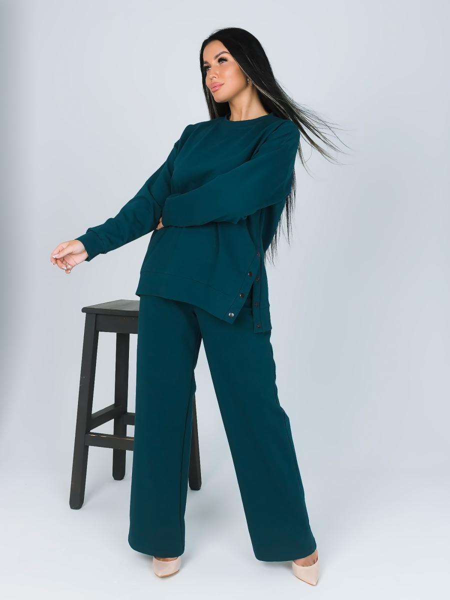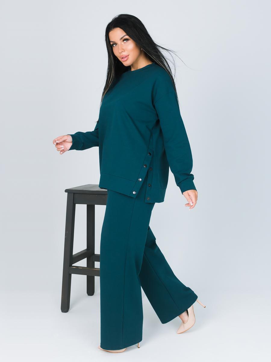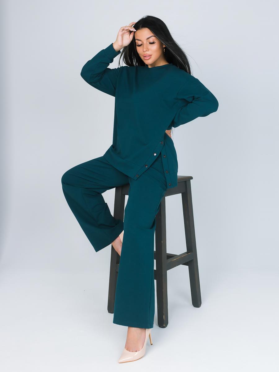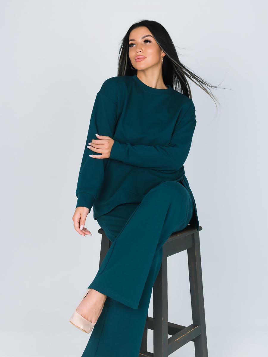 Создайте идеальный образ для домашнего уюта с нашим стильным костюмом в изумрудном цвете. Этот женский костюм состоит из туники и брюк, выполненных из высококачественного футера, который обеспечивает максимальный комфорт и свободу движений.