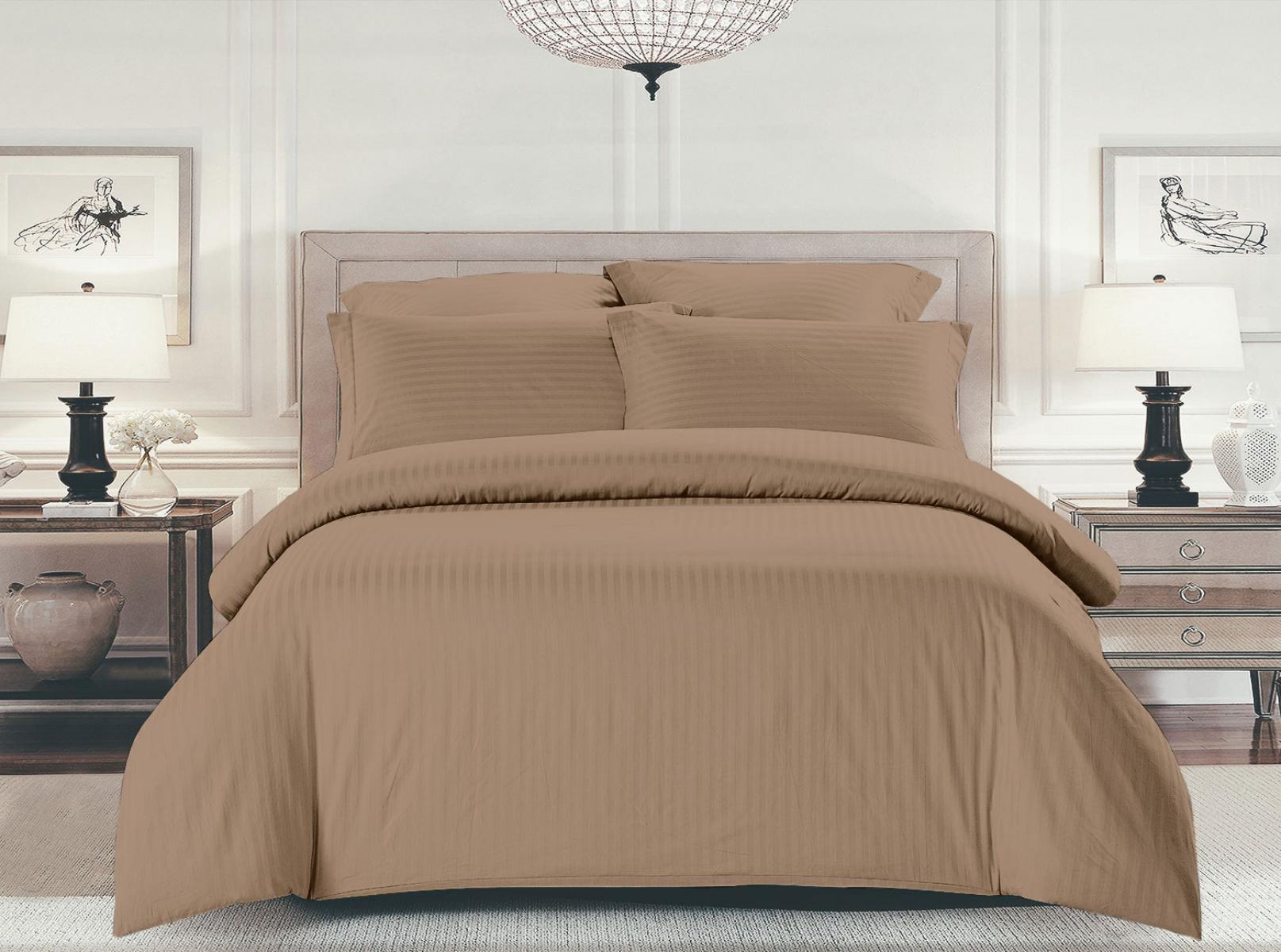 Комплект постельного белья Шпинель миндальный страйп-сатин