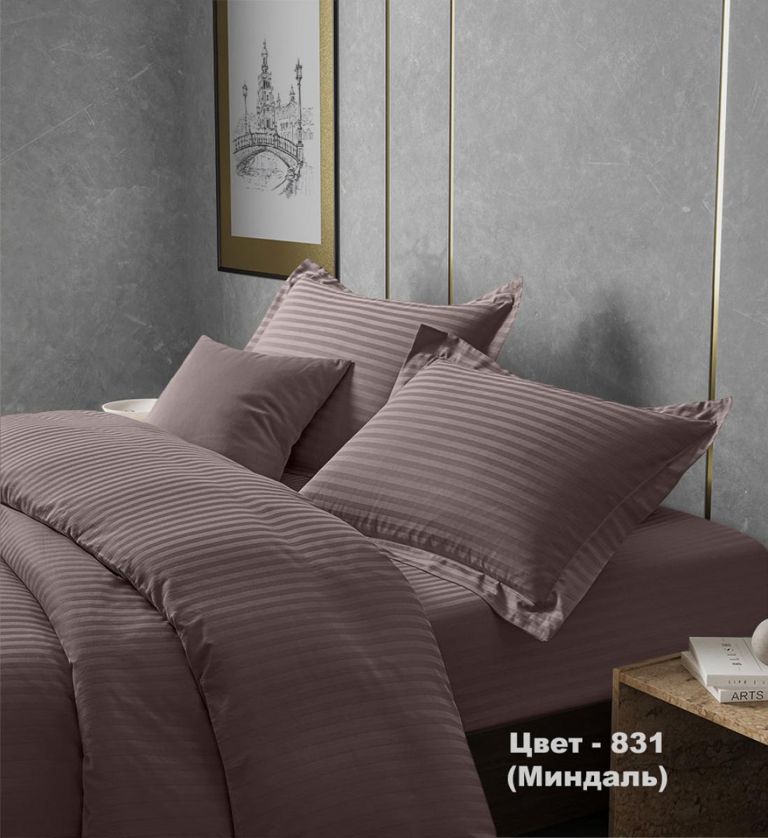 Комплект постельного белья Шпинель миндаль страйп-сатин с простынёй на резинке