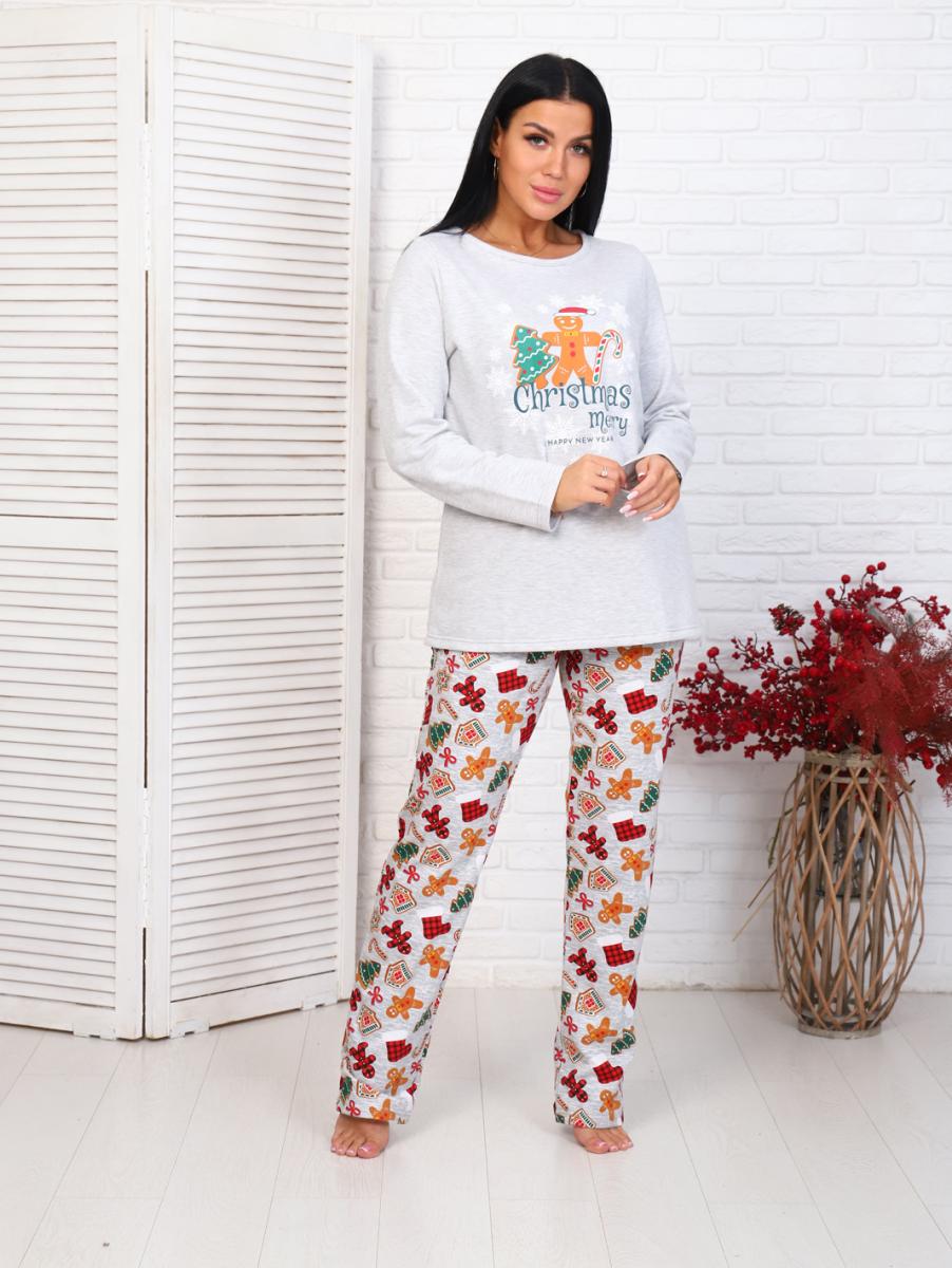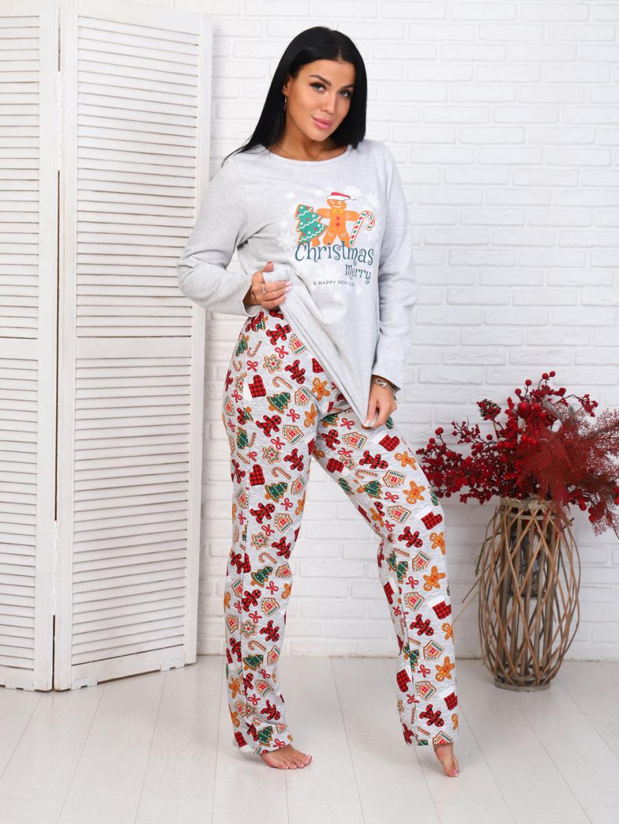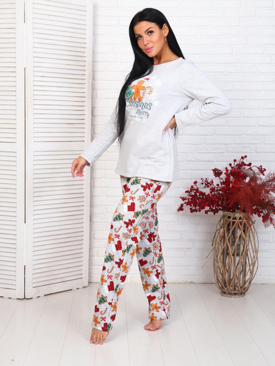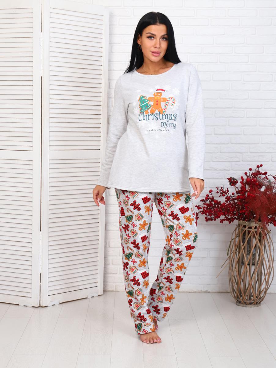 РегистрацияПижама с брюками, футер с начесом, "Christmas" (877-2)
