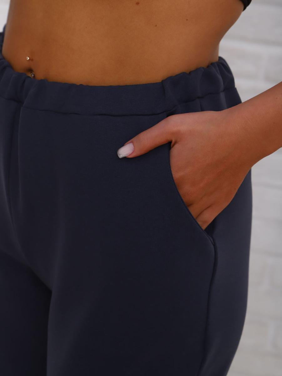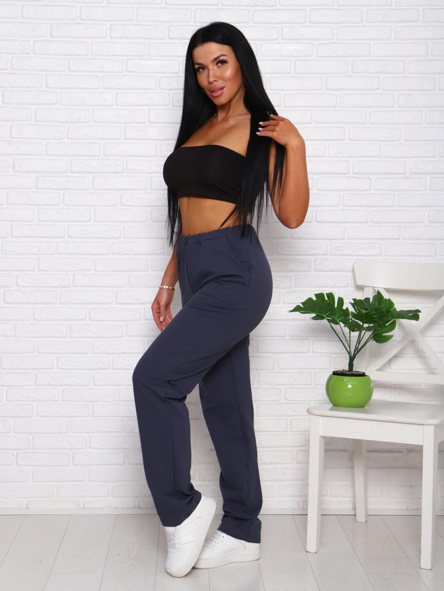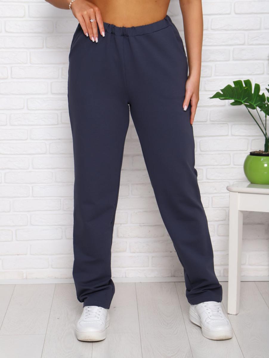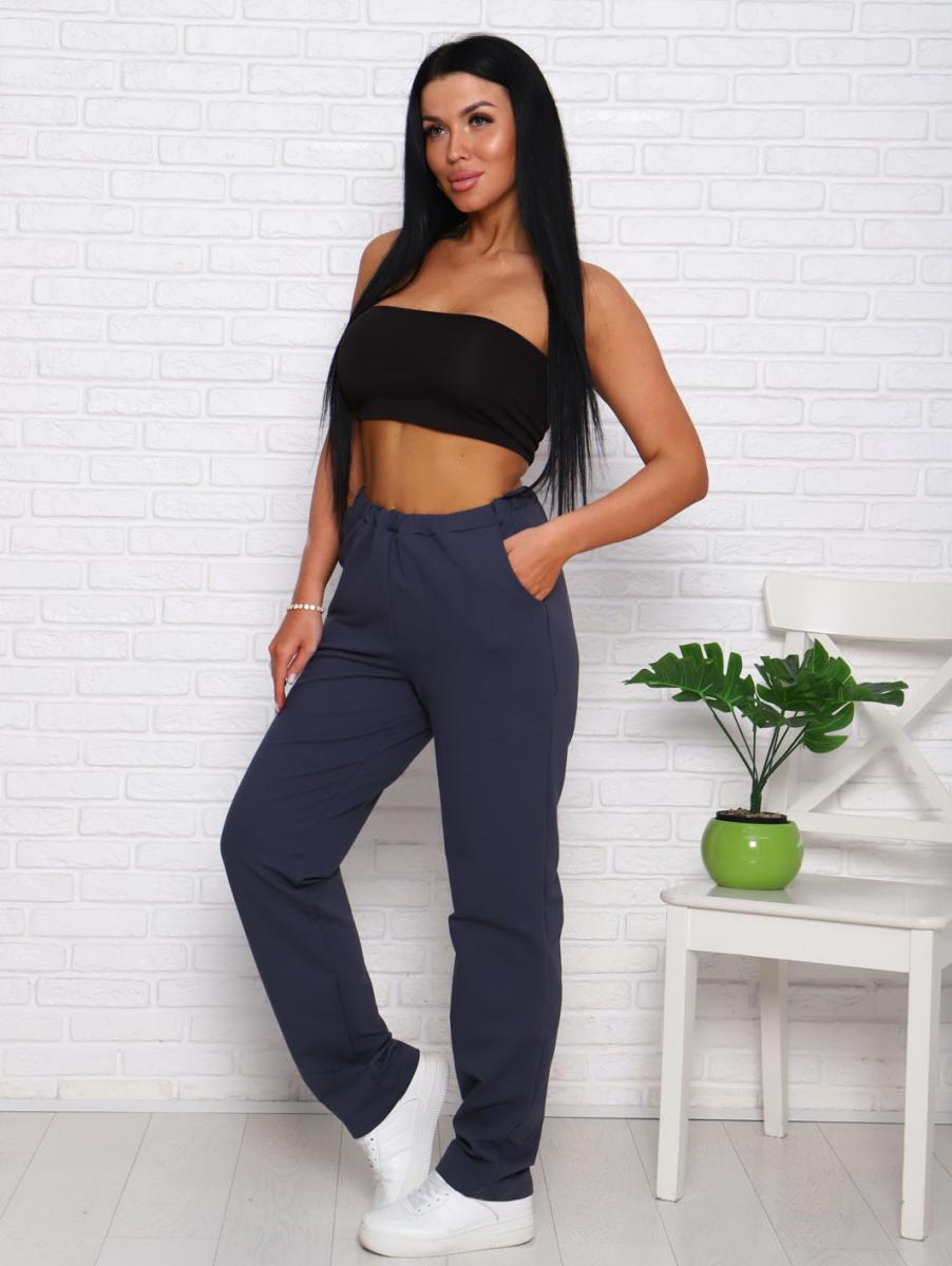 Брюки с карманами из футера с лайкрой 2-х нитка — идеальный выбор для создания стильного и комфортного образа. Прямой крой и отрезной пояс обеспечивают удобную посадку, а карманы добавляют функциональности.