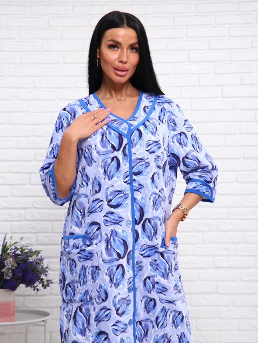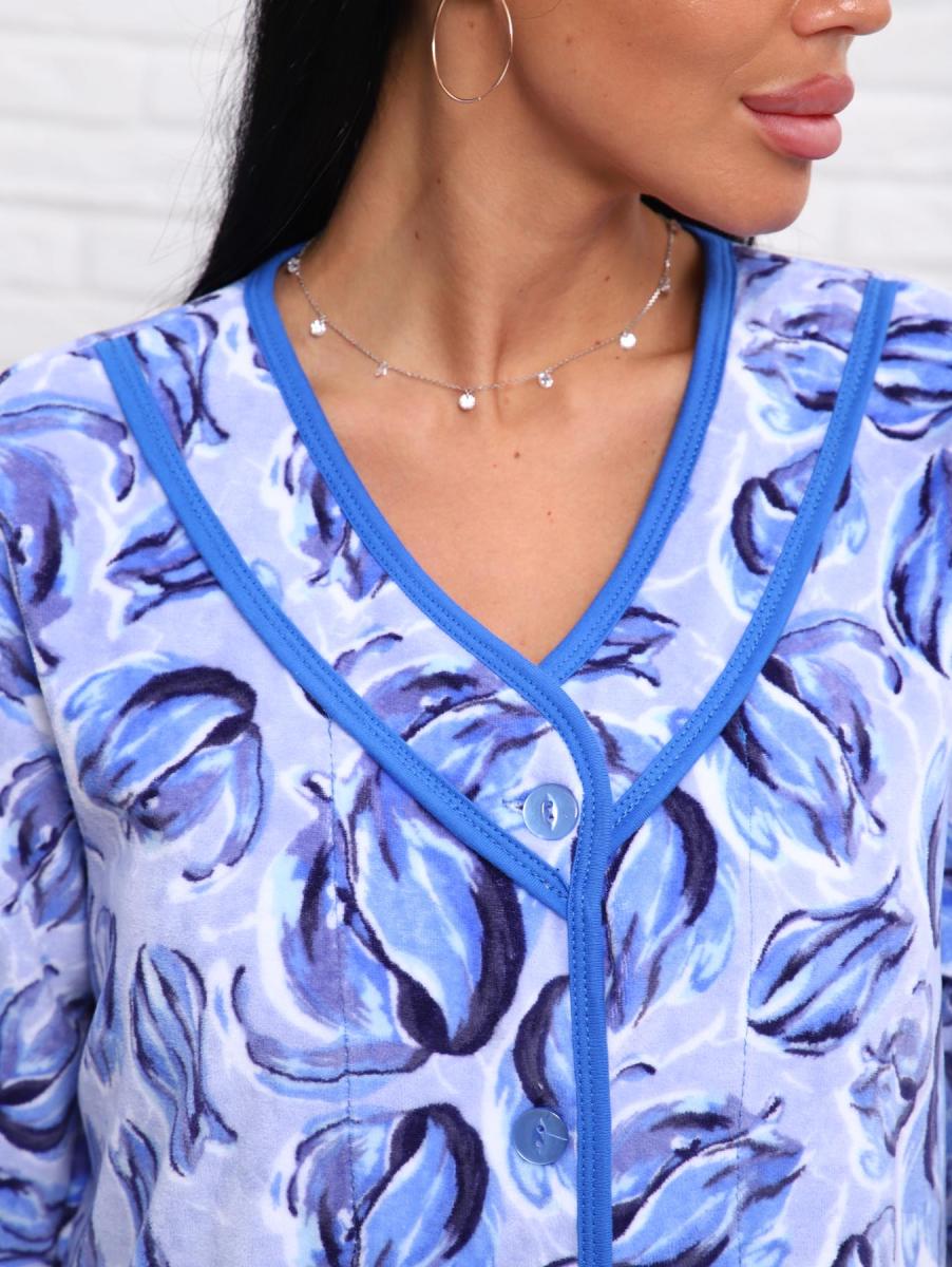 Этот очаровательный халат из набивного велюра станет незаменимым элементом вашего домашнего гардероба. Выполненный в нежном голубом цвете, он добавляет свежести и уюта в ваши будни.