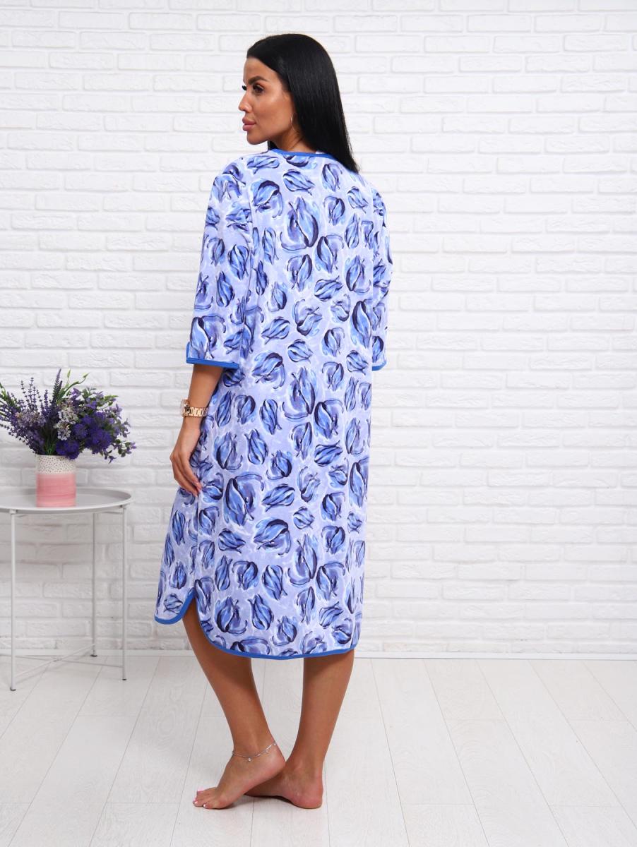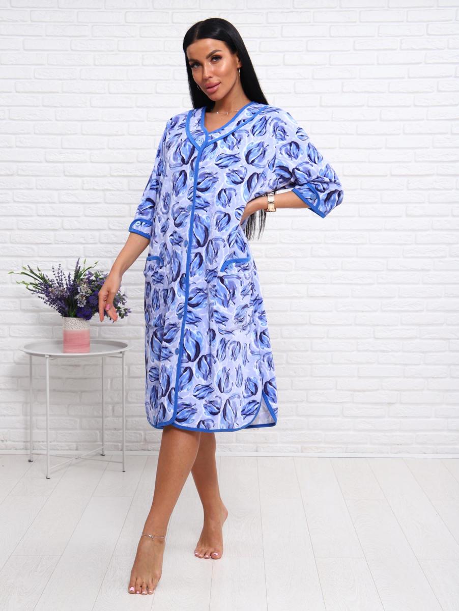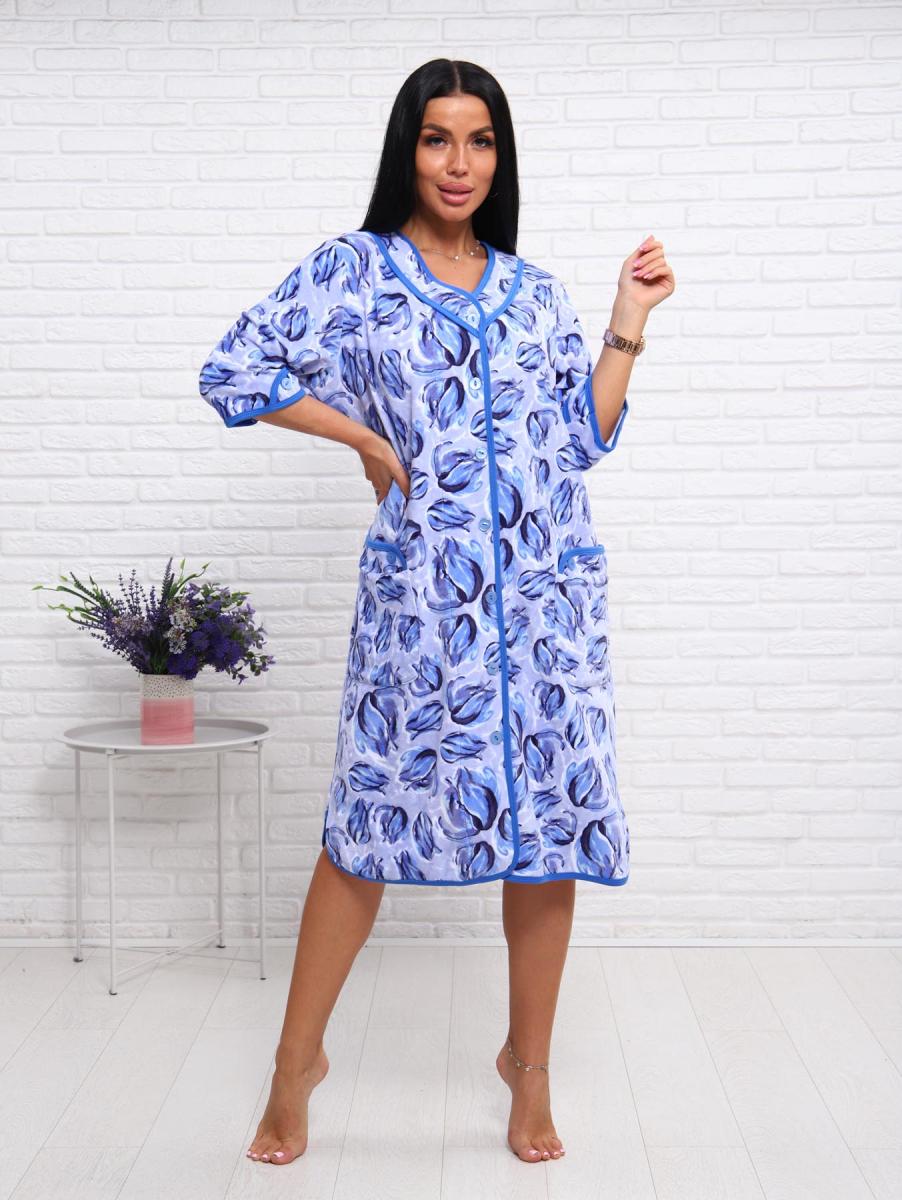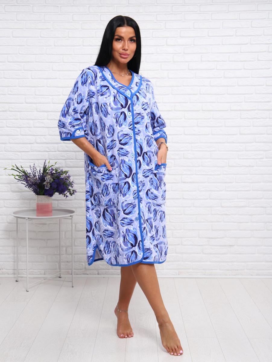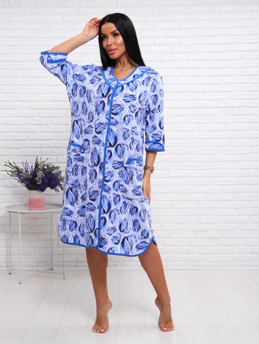 Халат на пуговицах с накладными карманами не только стильный, но и функциональный. Удобный крой и фигурный низ позволяют свободно двигаться, а декоративные обтачки на рукавах и карманах придают изделию изысканный вид. Окантовка кулирной гладью добавляет особый шарм и завершенность.