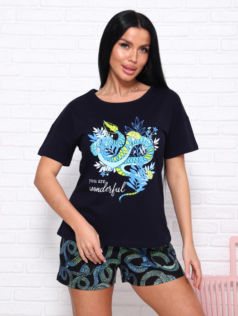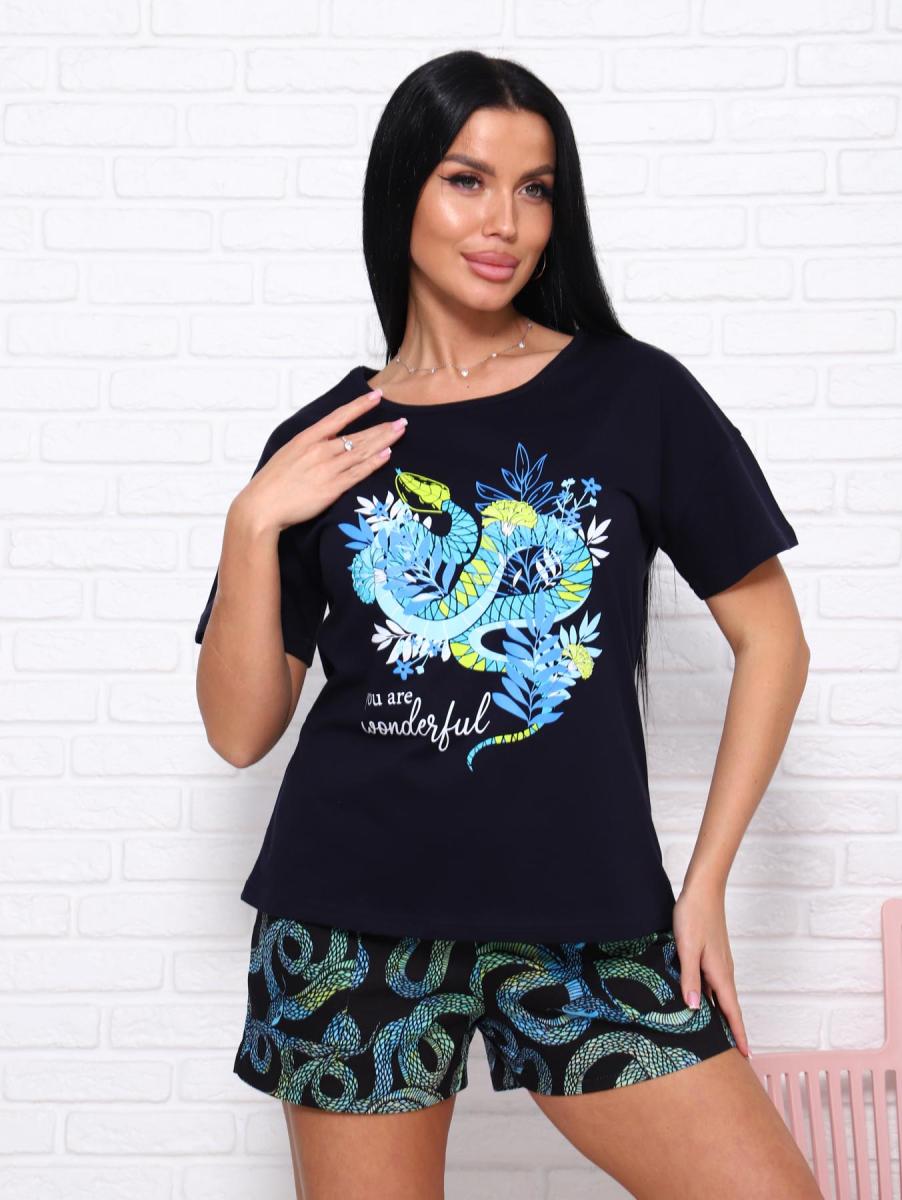 Костюм с шортами выполнен из мягкой и приятной на ощупь кулирки, состоящей на 100% из хлопка. Этот наряд сочетает в себе комфорт и стиль. Футболка со спущенным рукавом придаёт образу легкость, а шорты с отрезным поясом и карманами обеспечивают практичность.