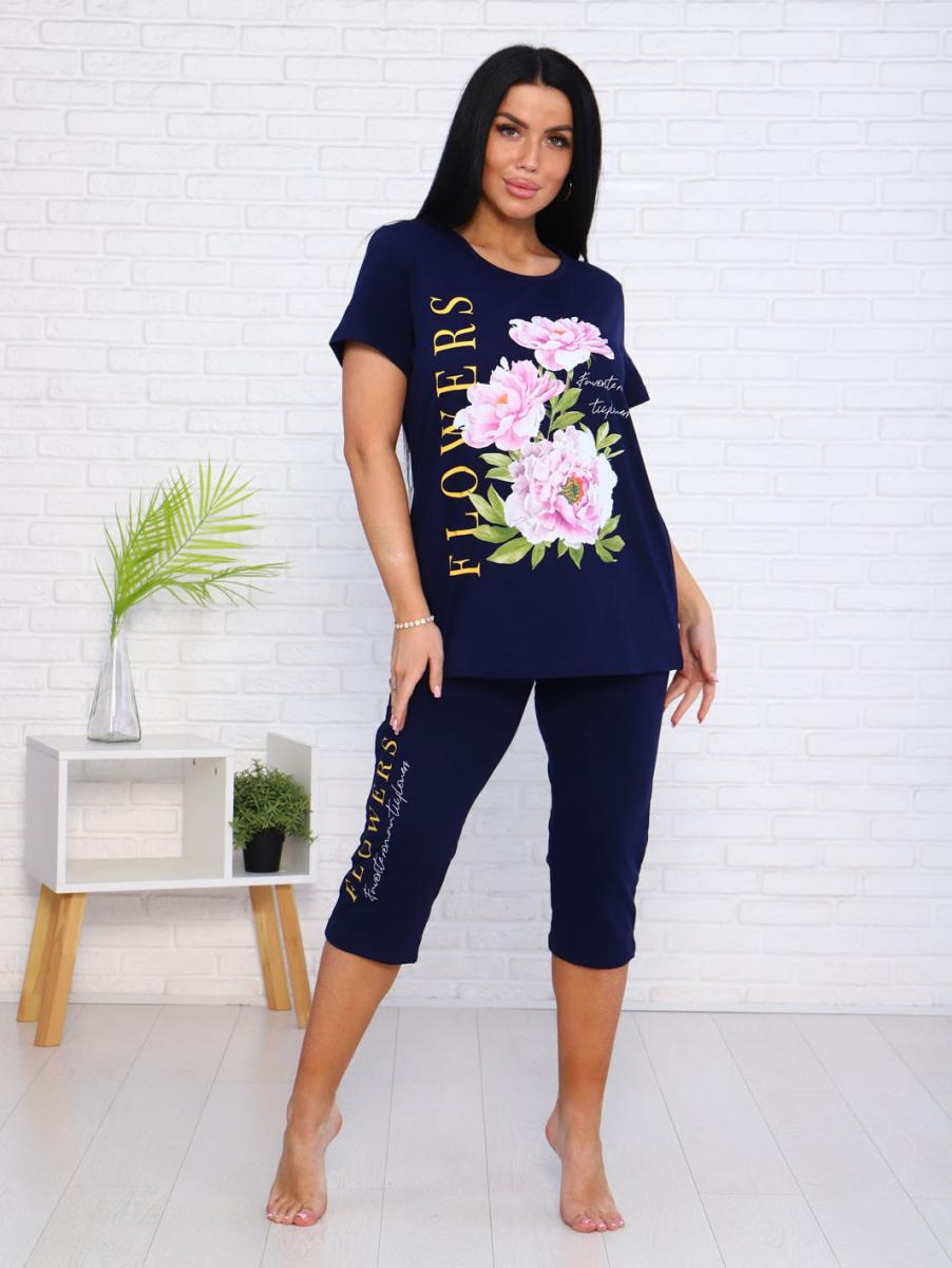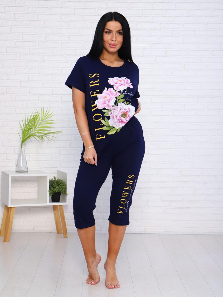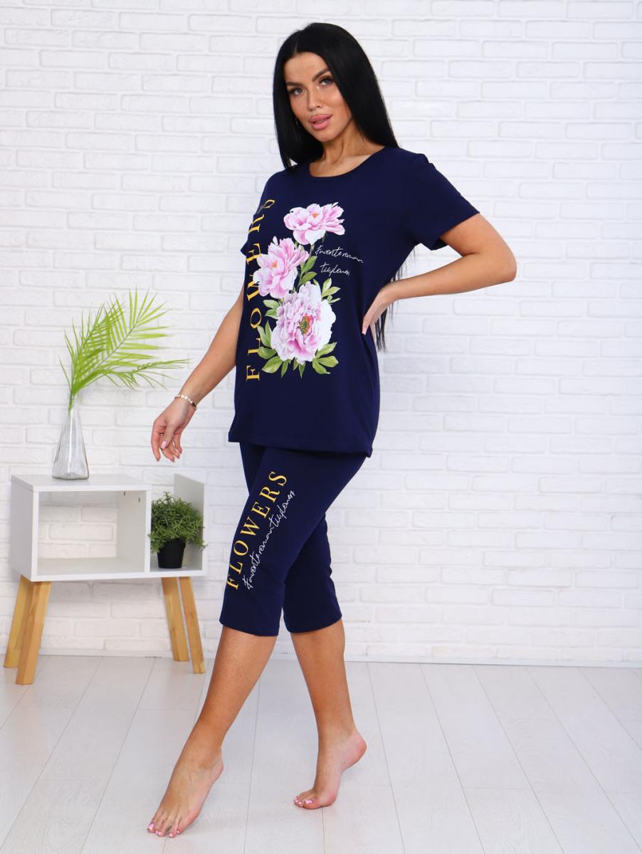 Костюм с бриджами, принт (00978, синий)