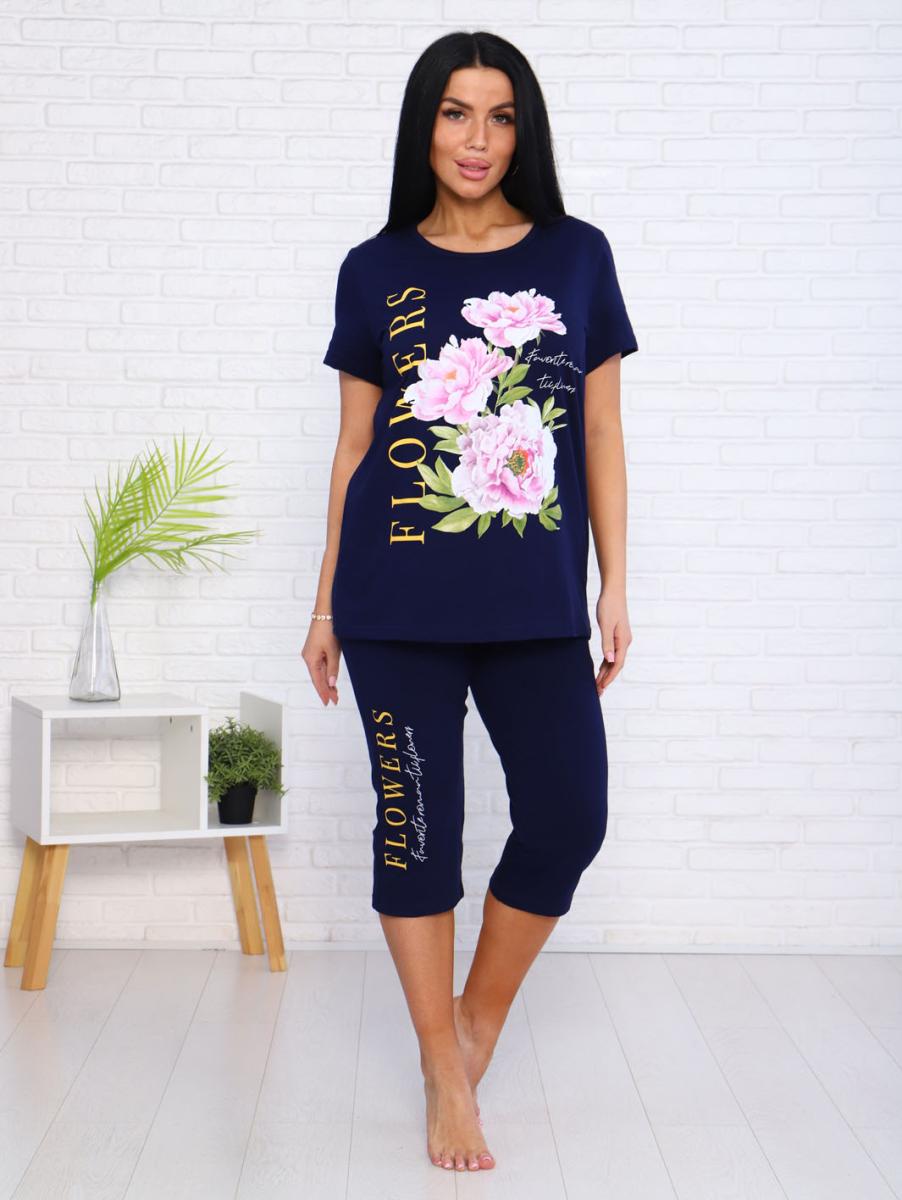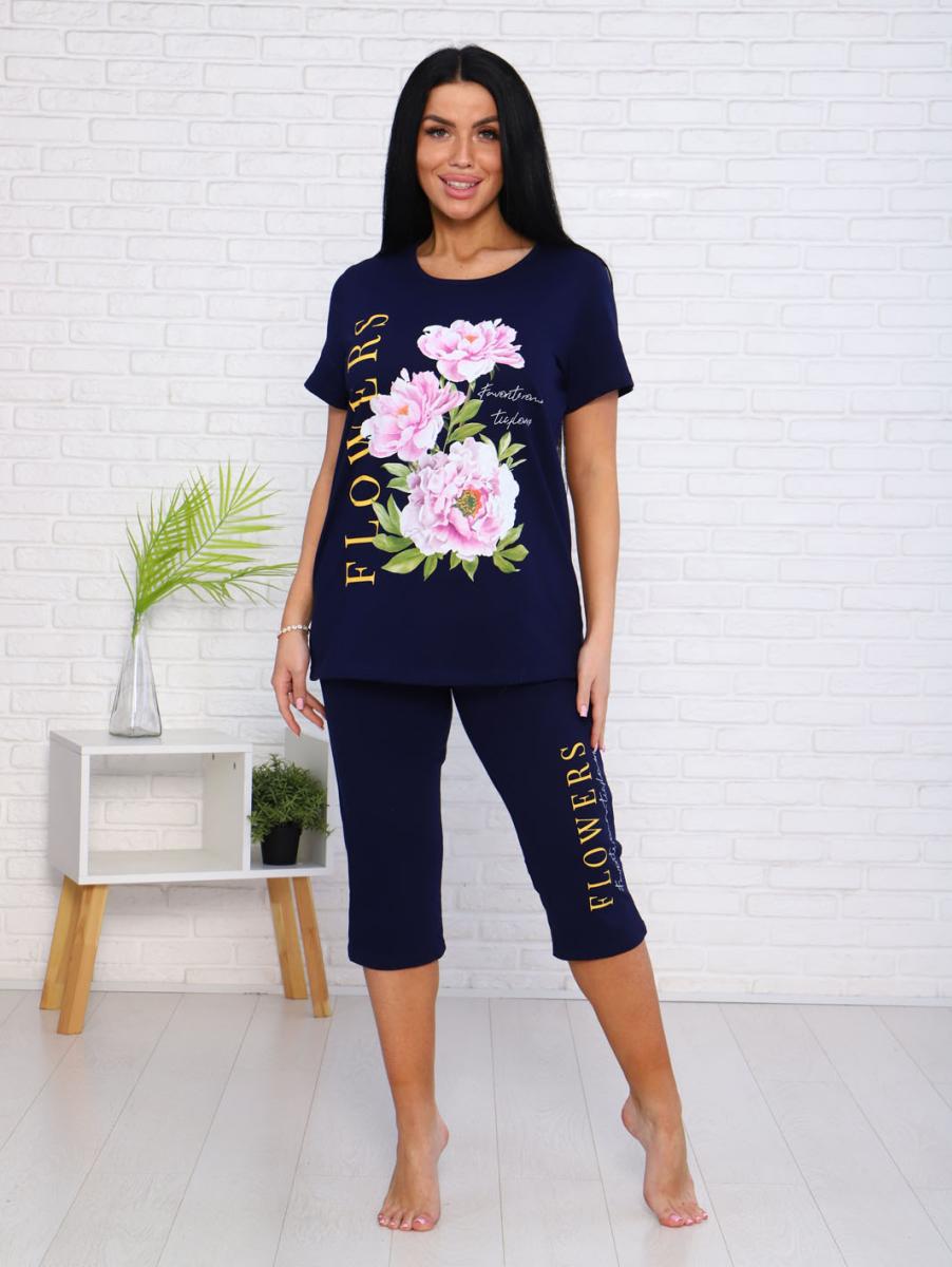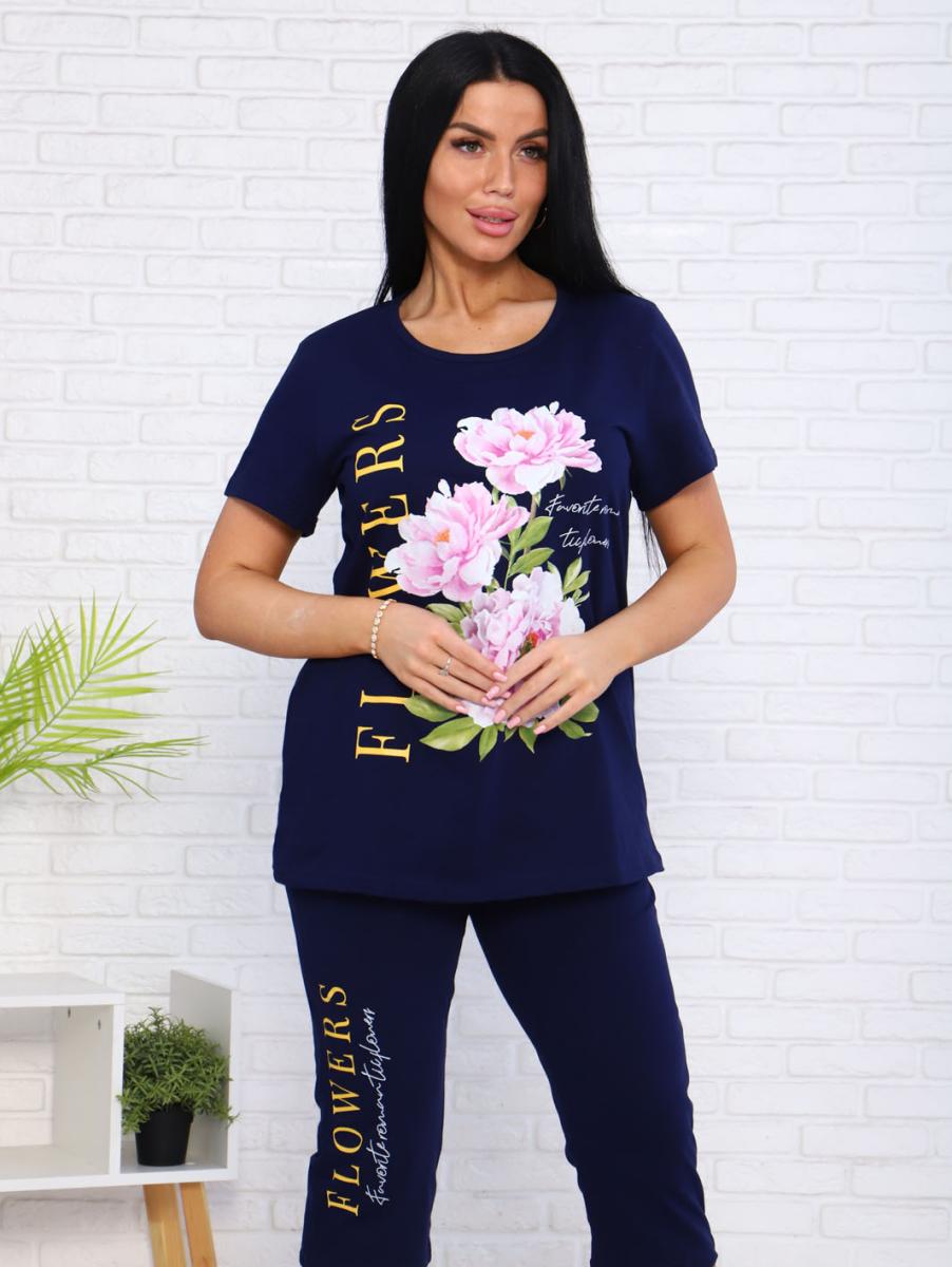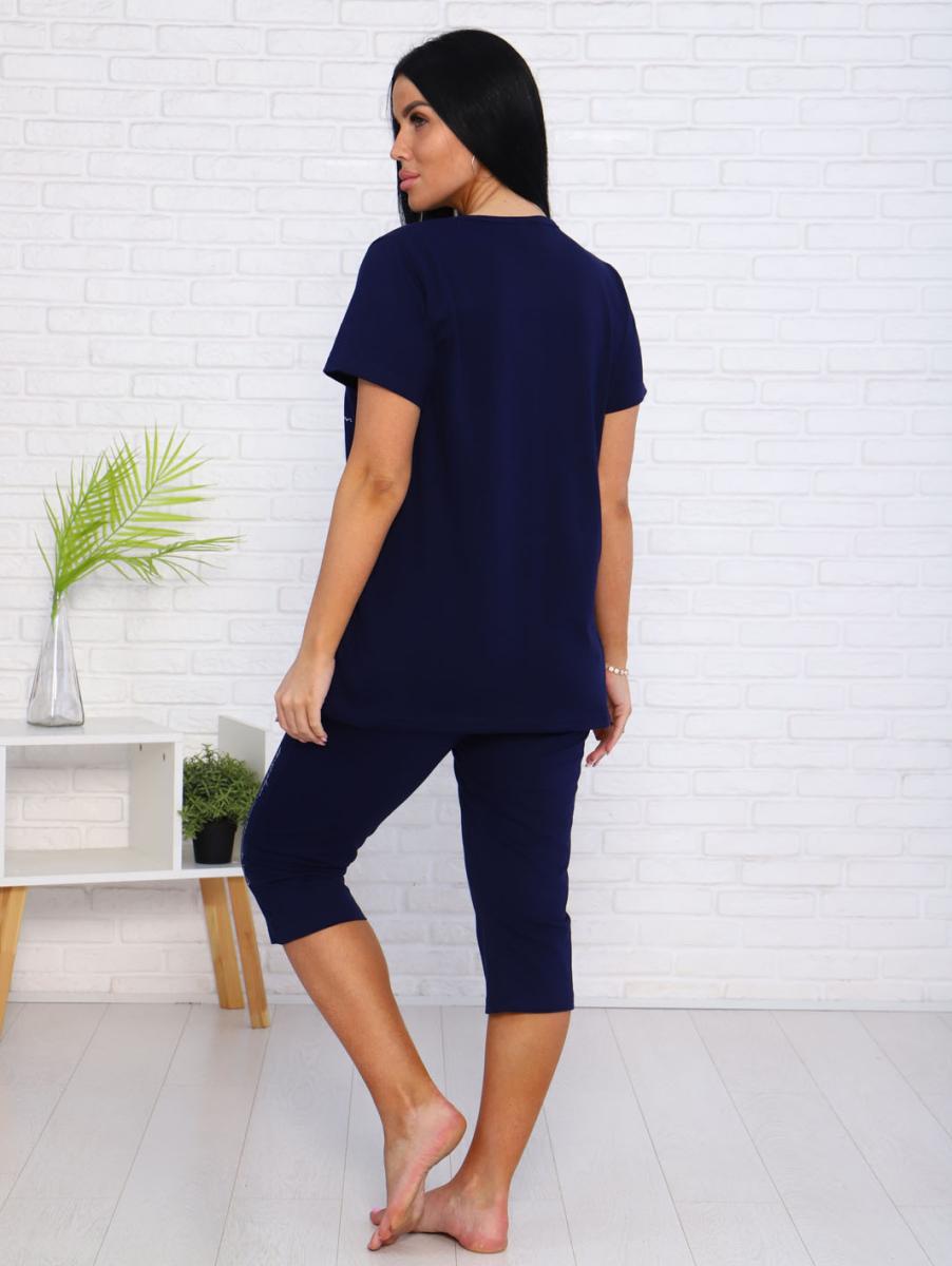 Костюм с бриджами, принт (00978, синий)
