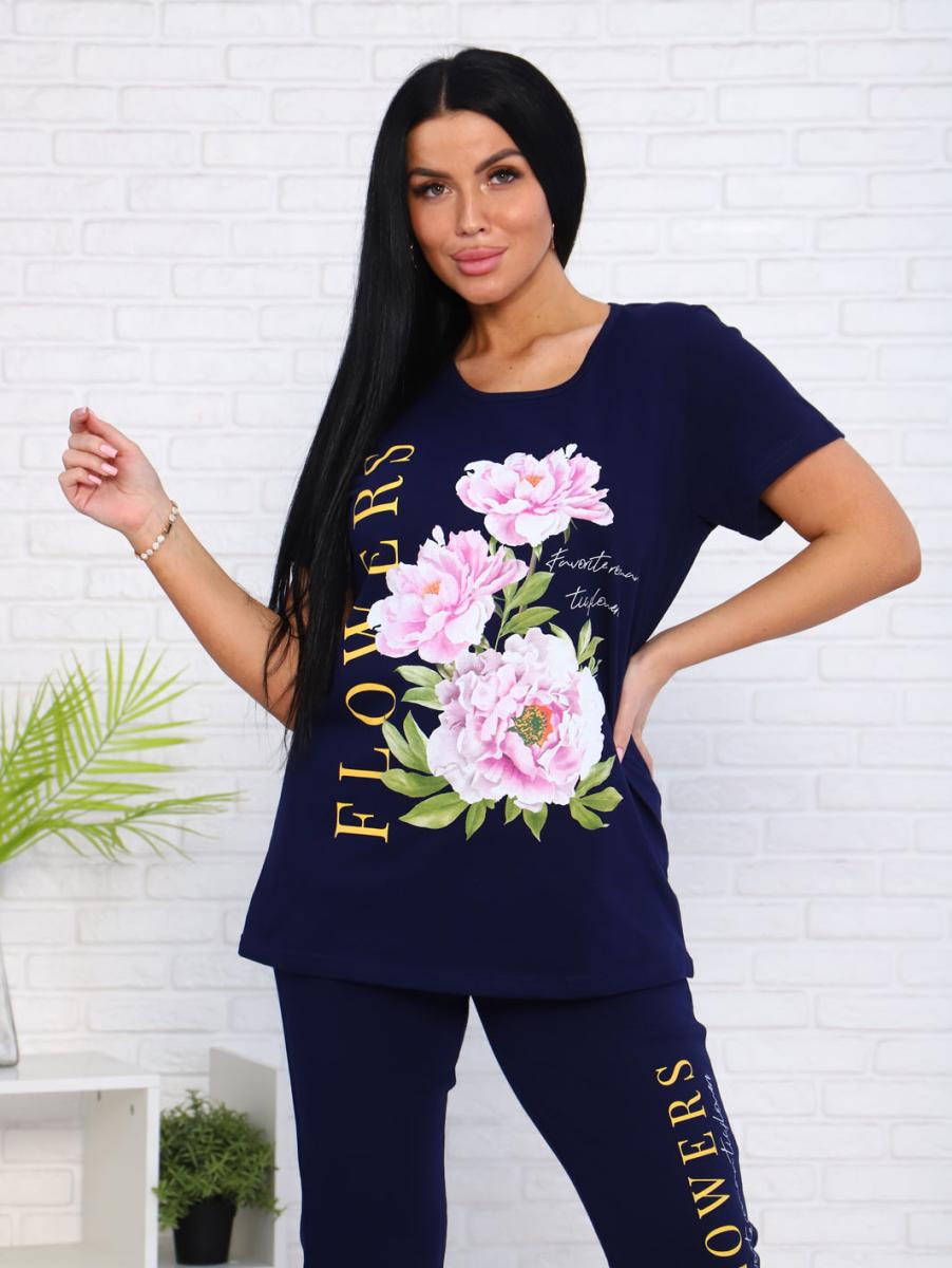 Футболка свободного прямого кроя с втачным рукавом отлично сидит и не сковывает движений, а яркий принт на ней добавляет нотку свежести и стиля. Бриджи высокой посадки на резинке обеспечивают идеальную посадку и удобство в носке.