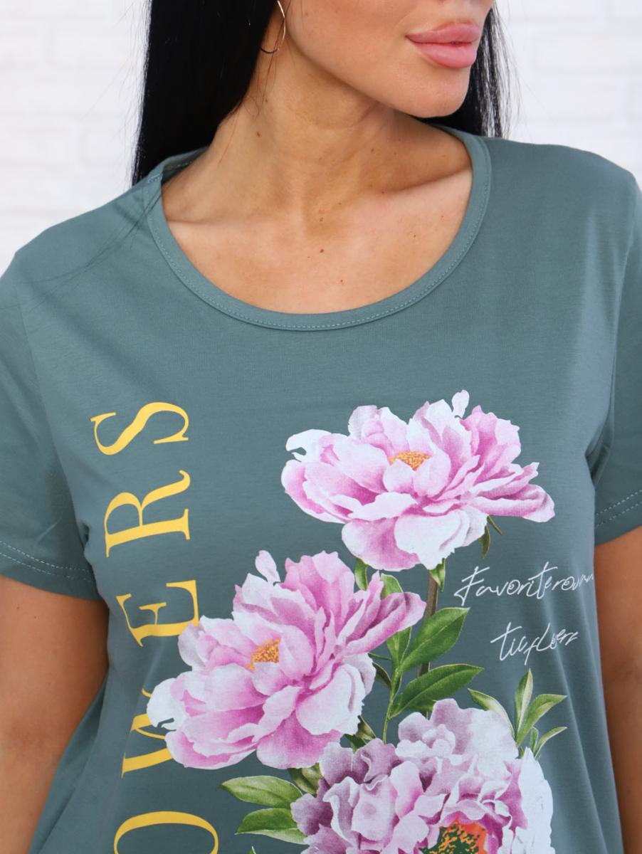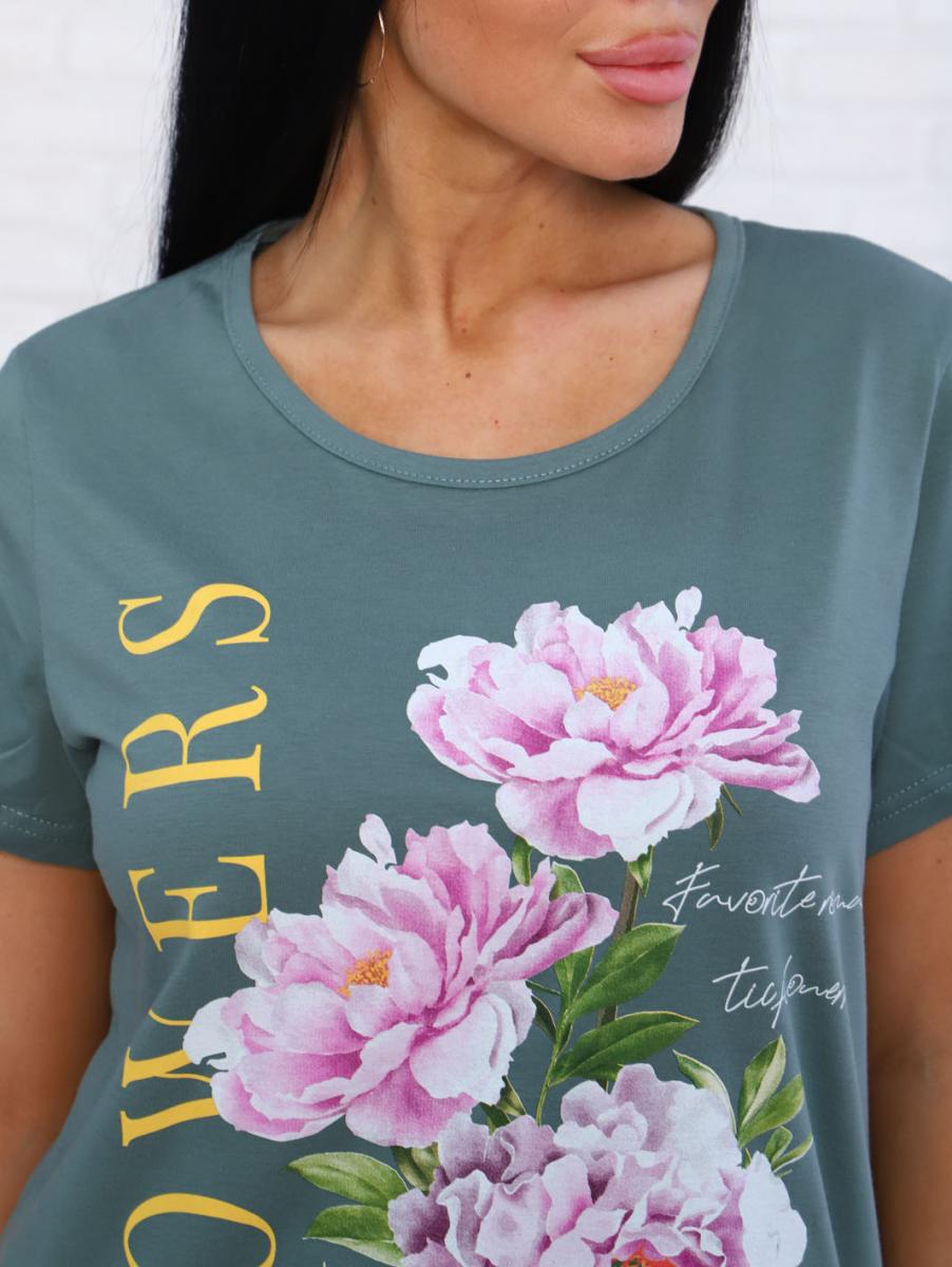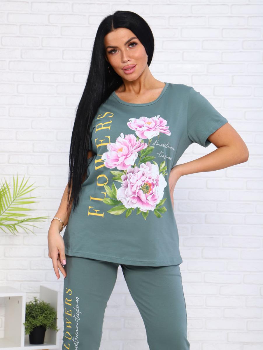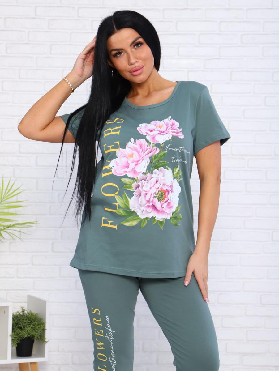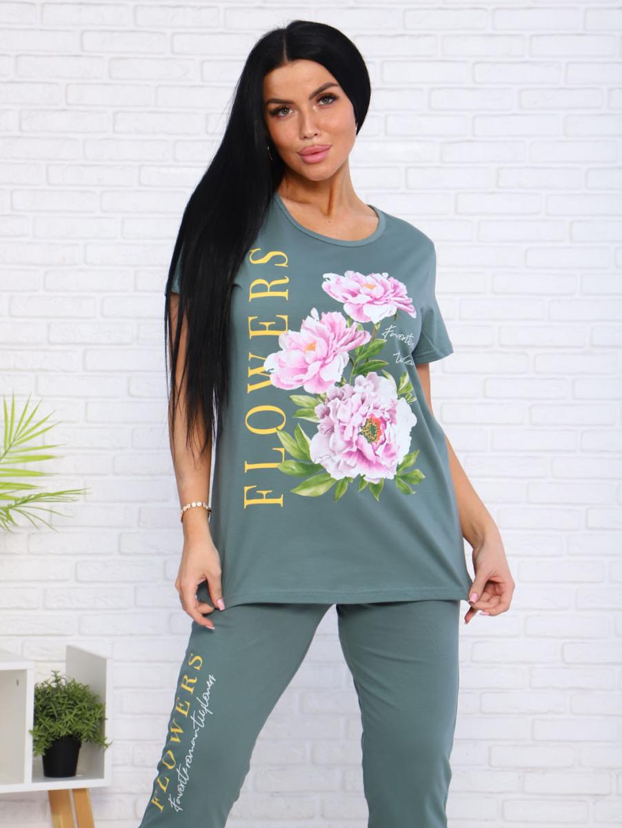 Футболка свободного прямого кроя с втачным рукавом отлично сидит на фигуре, а яркий принт с цветами добавляет изюминку в ваш домашний образ. Бриджи высокой посадки на резинке удобно облегают талию, позволяя вам свободно двигаться.