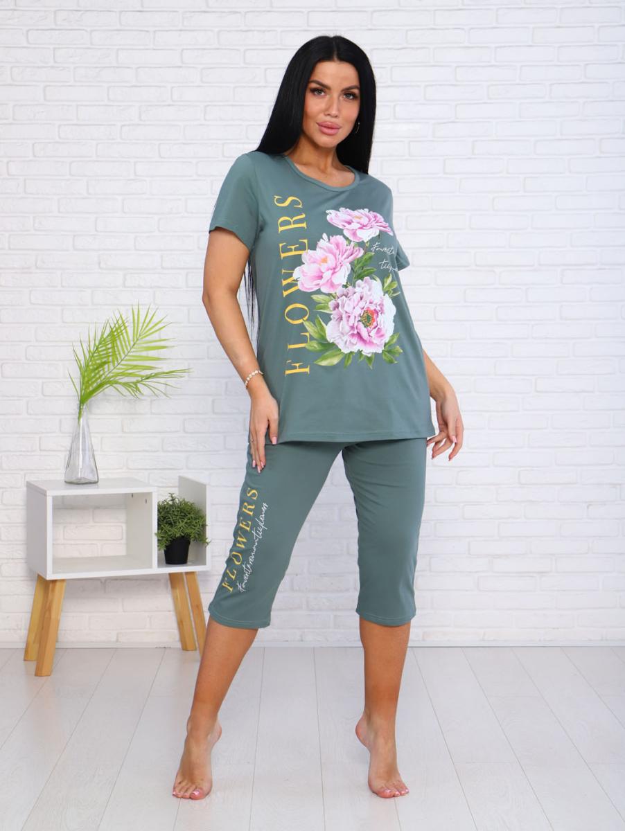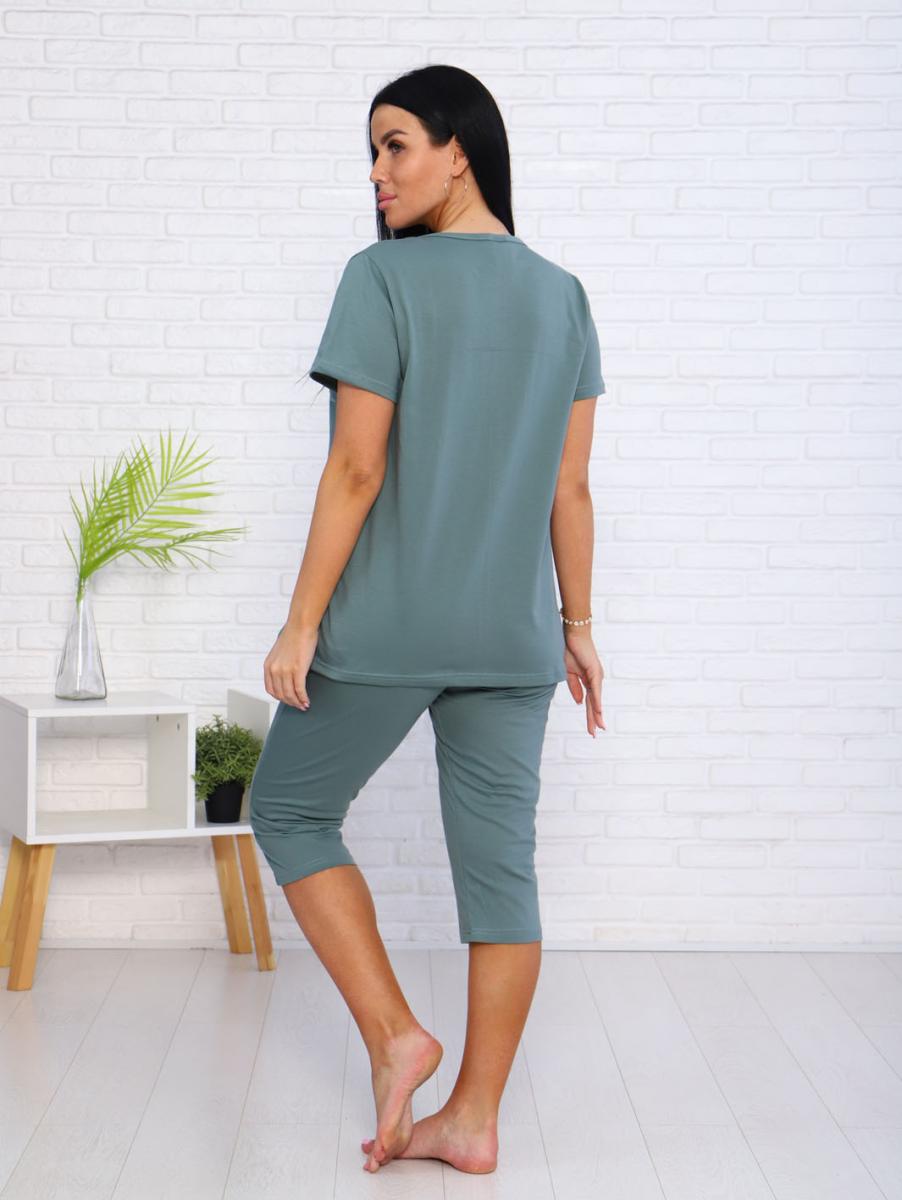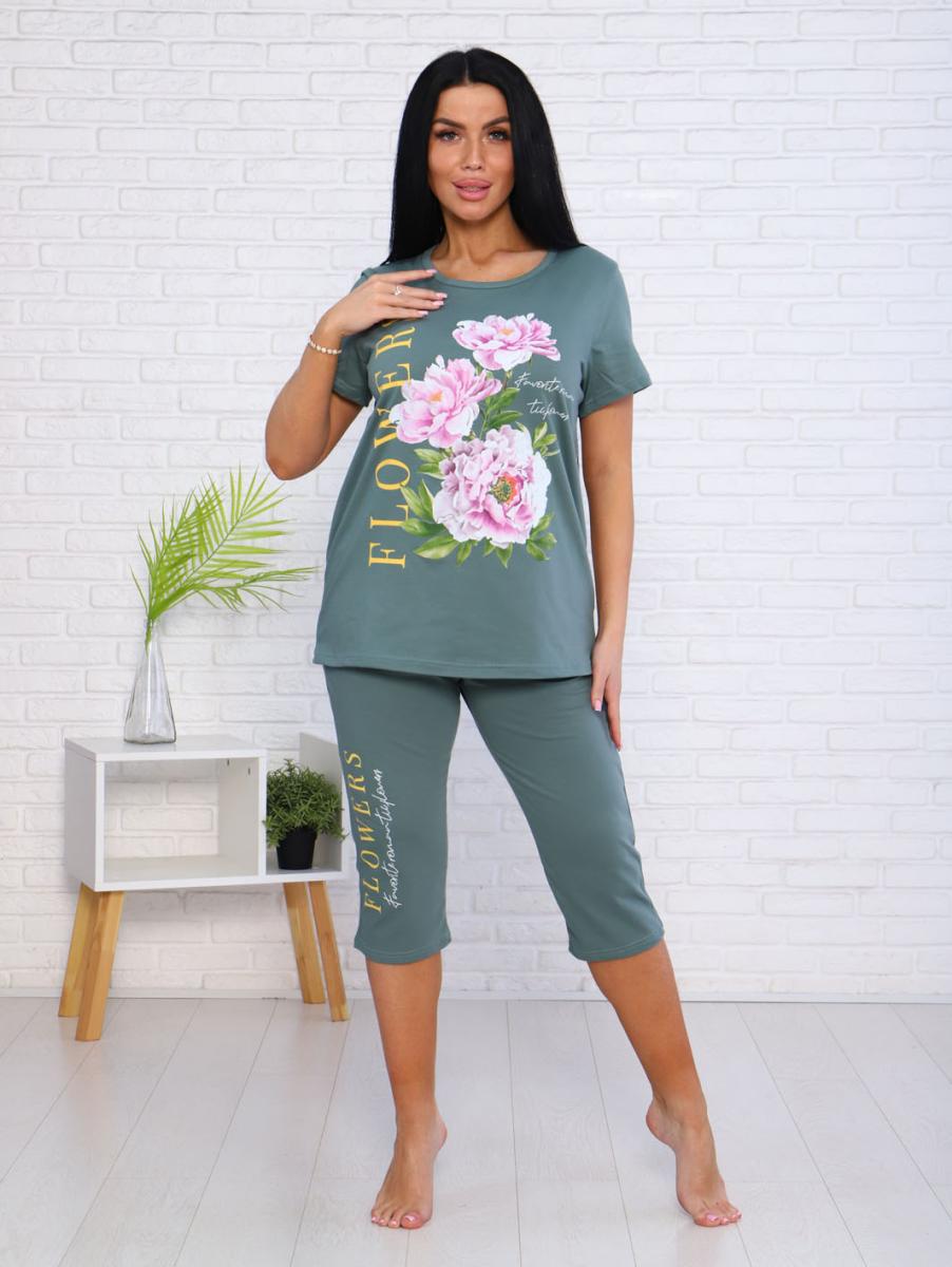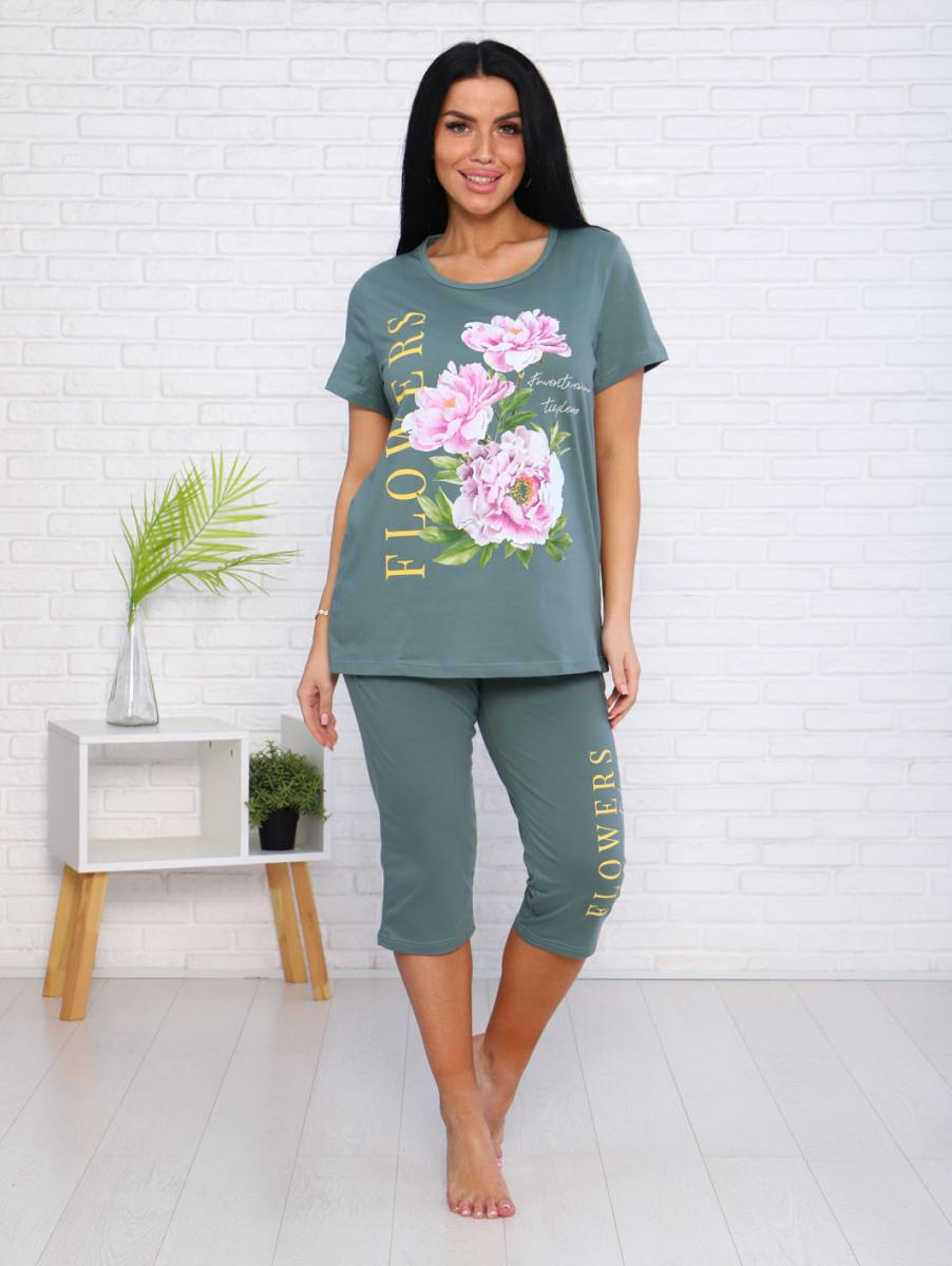 Создайте уют и комфорт в своем доме с этим стильным костюмом с бриджами в нежном оливковом цвете. Изготовленный из 100% хлопка, он обеспечивает максимальную комфортность и воздухопроницаемость.