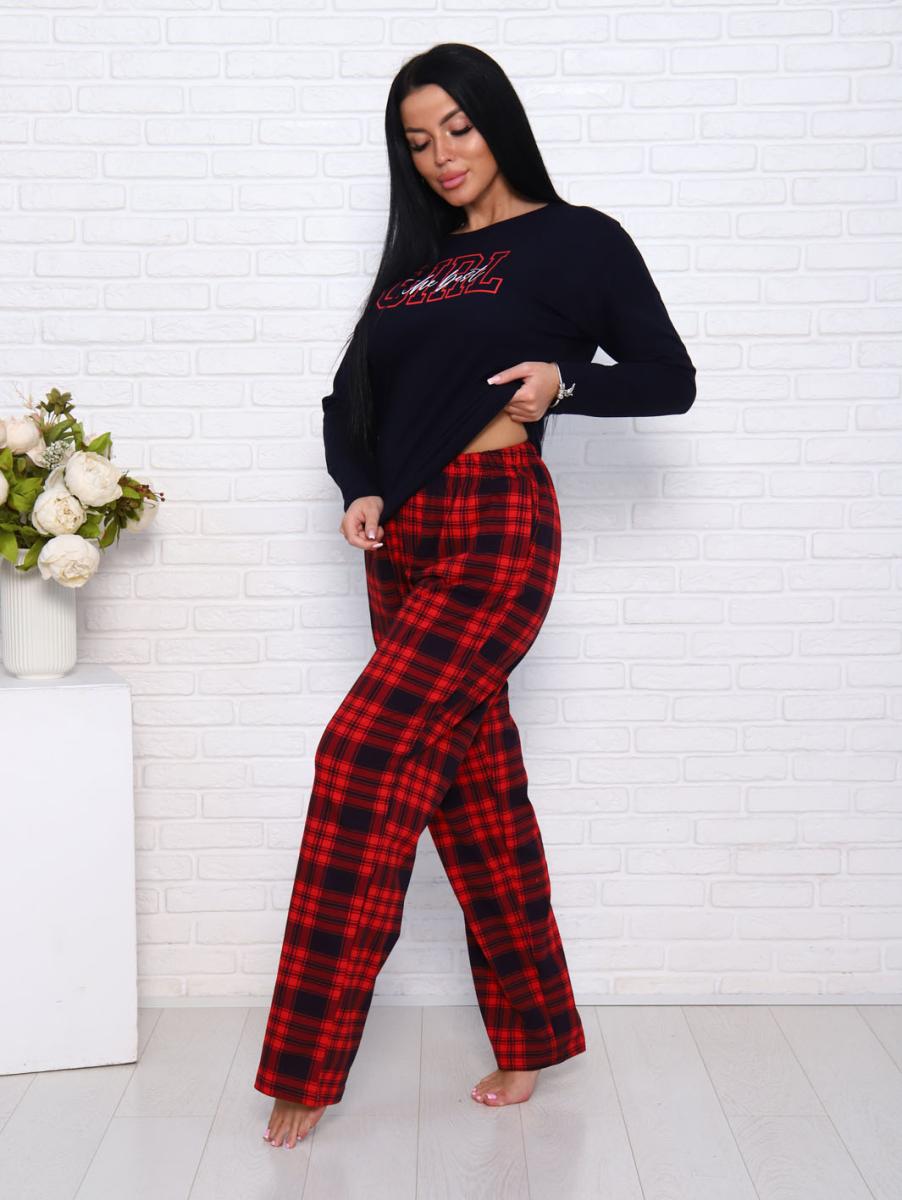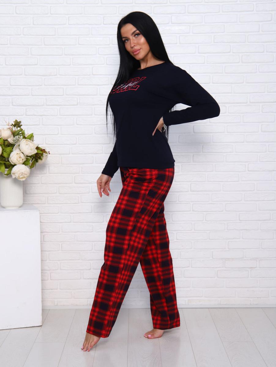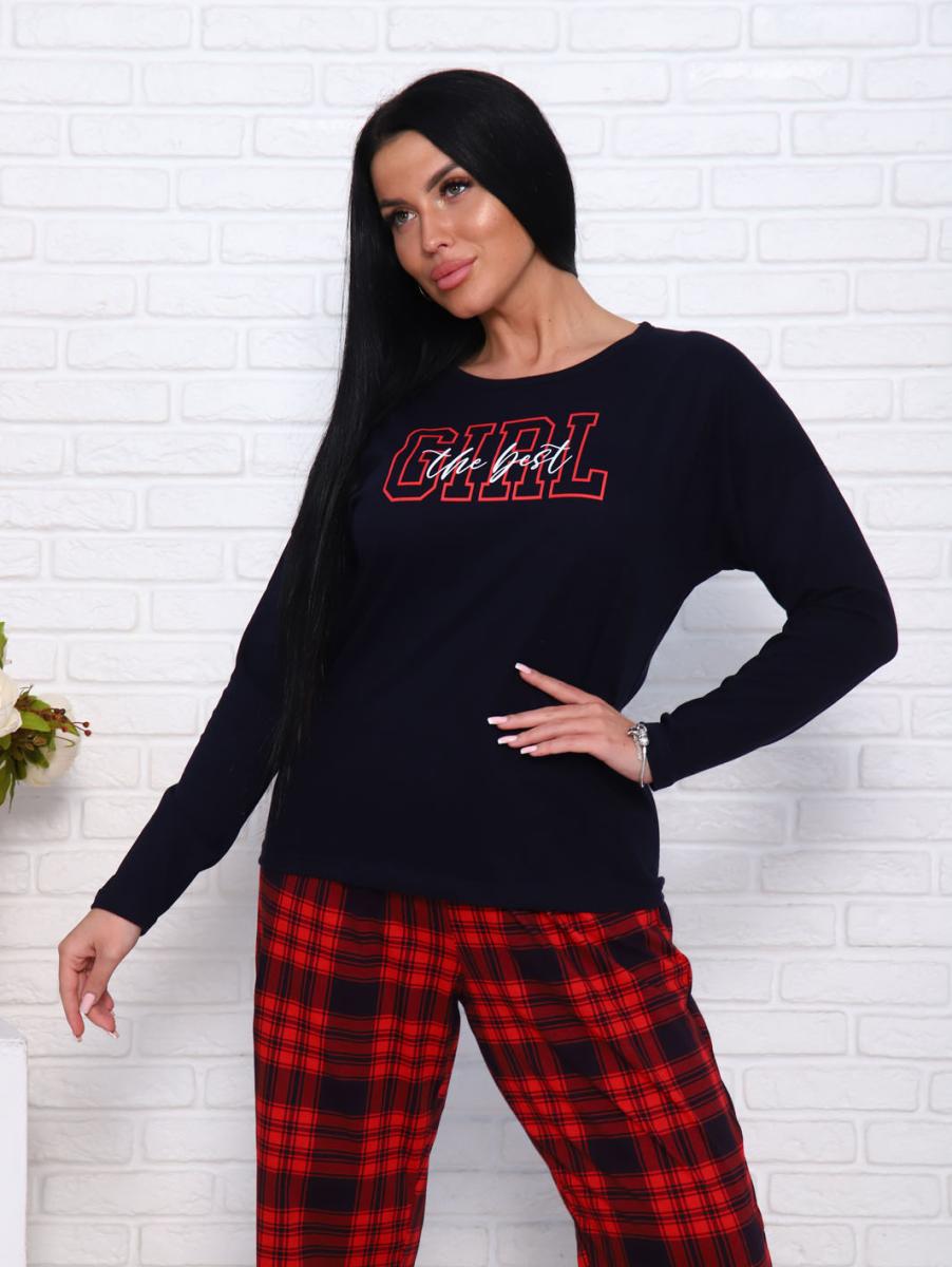 Костюм домашний для сна и отдыха — это идеальный выбор для тех, кто ценит комфорт и стиль. Футболка с длинным рукавом и спущенным плечом выполнена из мягкой кулирки, а оригинальный принт на полочке добавляет нотку индивидуальности. Длинные свободные брюки с карманами и широкой резинкой в поясе обеспечивают свободу движений и максимальный комфорт.
