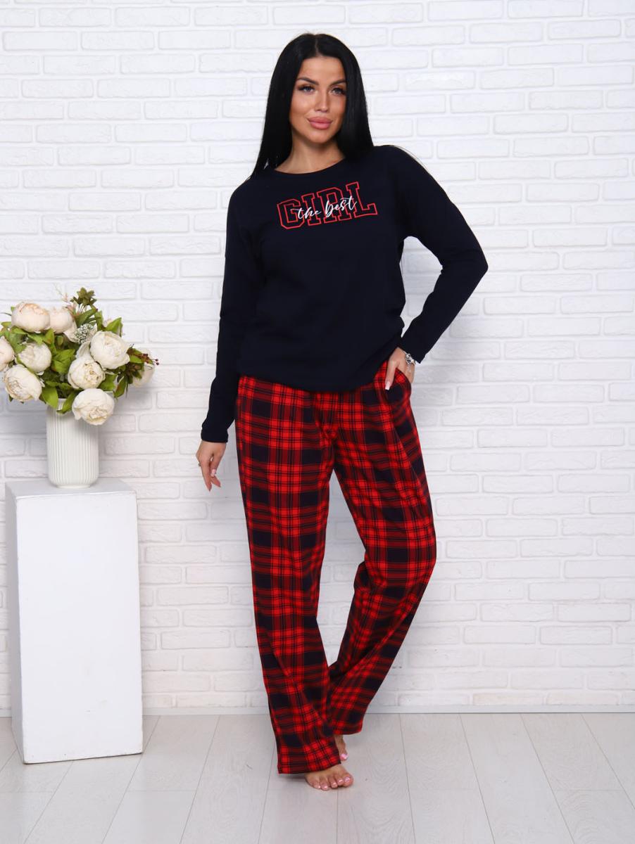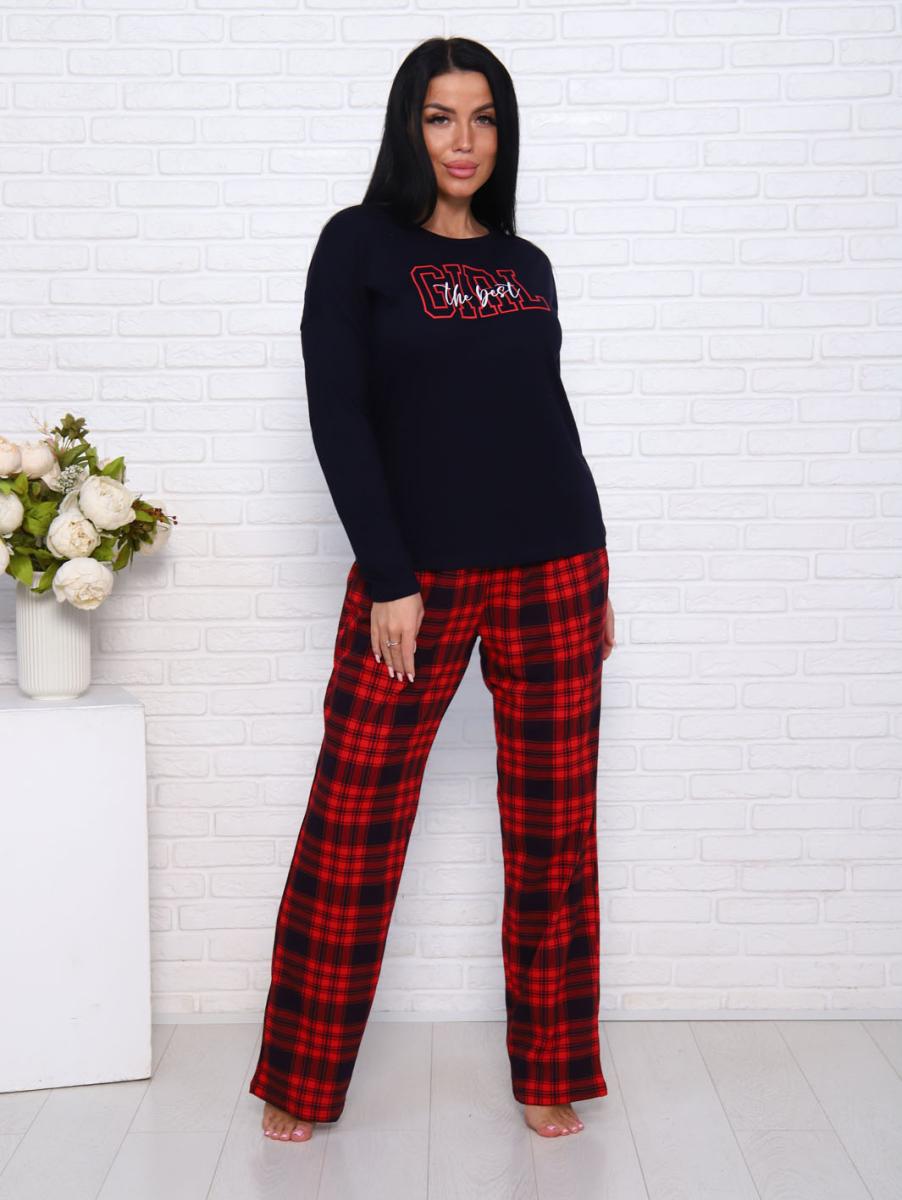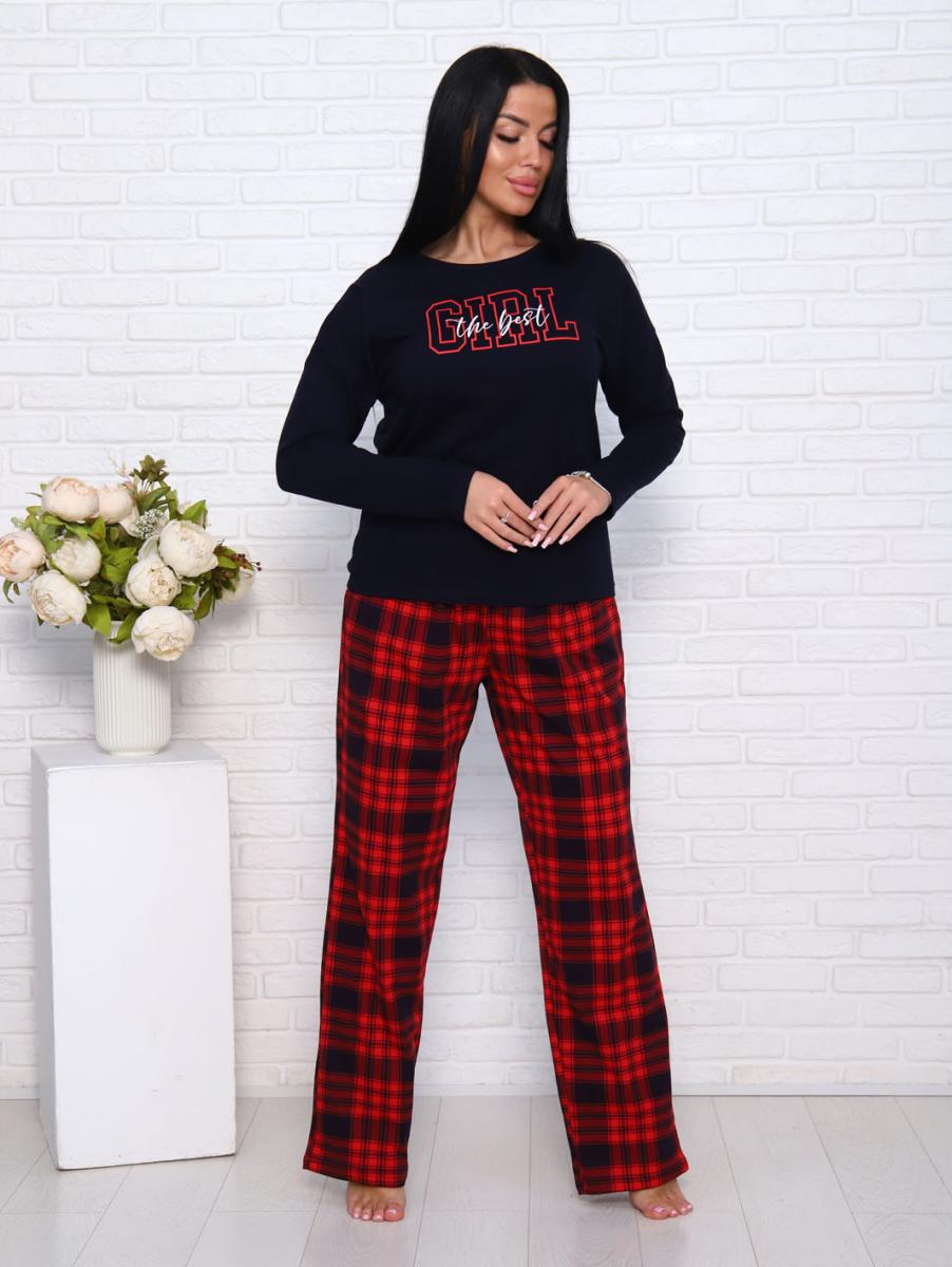 Костюм домашний для сна и отдыха — это идеальный выбор для тех, кто ценит комфорт и стиль. Футболка с длинным рукавом и спущенным плечом выполнена из мягкой кулирки, а оригинальный принт на полочке добавляет нотку индивидуальности. Длинные свободные брюки с карманами и широкой резинкой в поясе обеспечивают свободу движений и максимальный комфорт.
