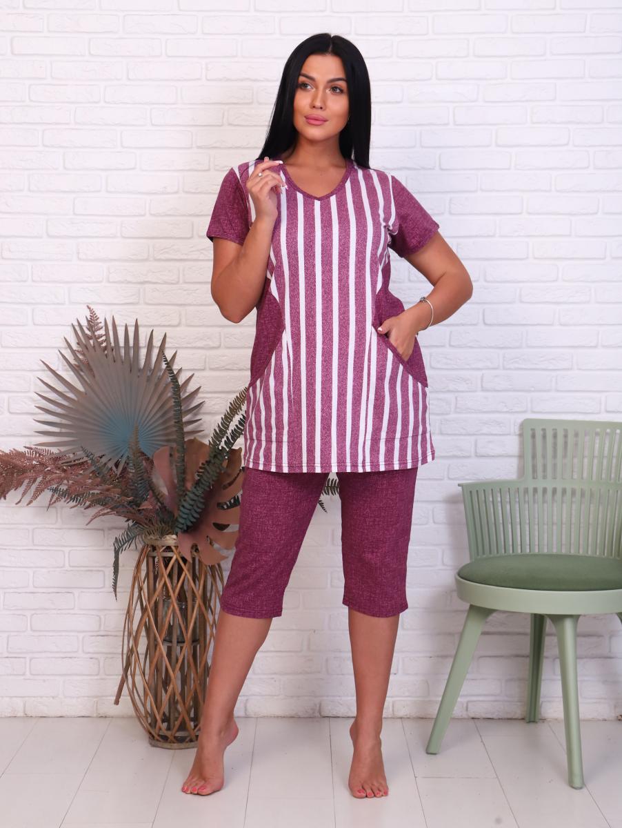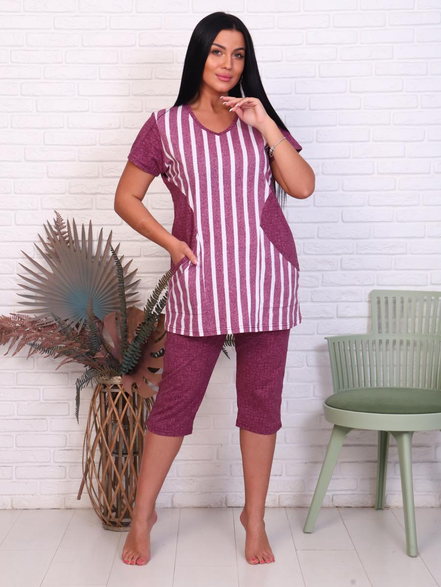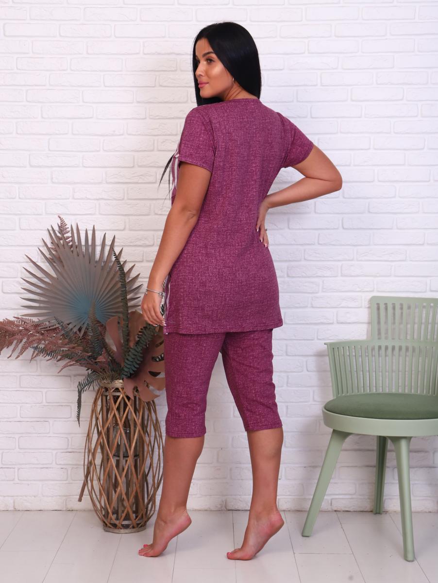 Этот стильный и комфортный костюм из кулирки реактив станет идеальным выбором для домашнего отдыха. Выполненный в бордовом цвете, он сочетает в себе современные тенденции и уют. Удобные бриджи на резинке обеспечивают свободу движений, а V-образный вырез горловины добавляет изящества. Практичные карманы в боковых швах позволят держать под рукой все необходимые мелочи.