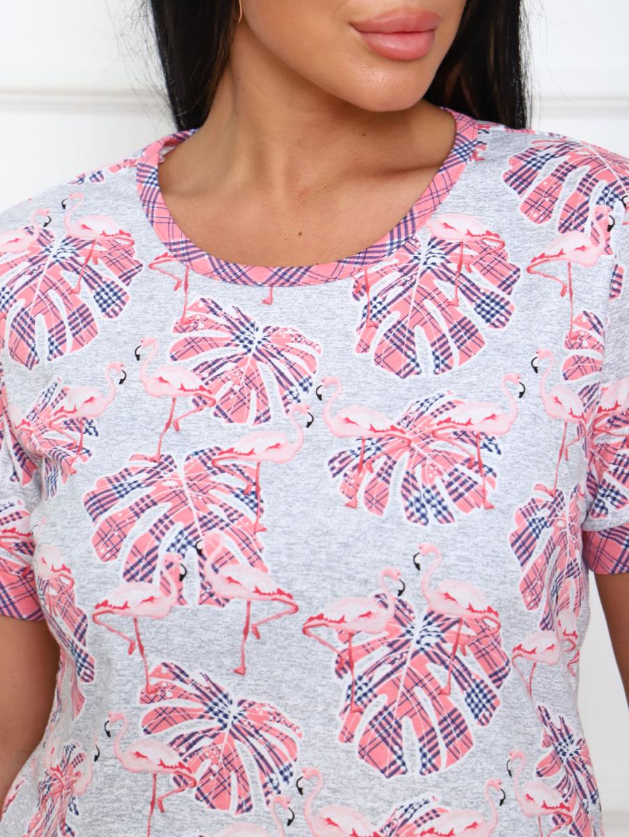 Костюм с шортами выполнен из высококачественной кулирки (100% хлопок), что обеспечивает невероятный комфорт и легкость при носке. Яркий розовый цвет и оригинальный дизайн с компаньонными тканями создают стильный и современный образ для отдыха дома. Футболка прямого свободного кроя с округлой горловиной и втачными рукавами с манжетами придает элегантность, а шорты на отрезном поясе с карманами обеспечивают практичность и удобство. Преимущества данного костюма:
