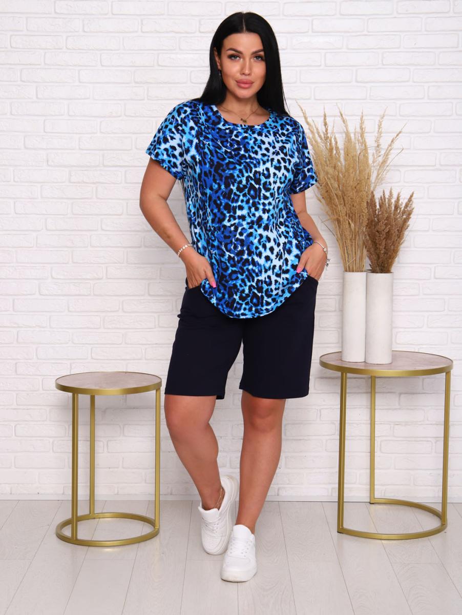 Костюм с шортами в ярком синем цвете станет отличным дополнением вашего домашнего гардероба. Изготовленный из 100% хлопка, этот костюм обеспечивает максимальный комфорт и свободу движений. Футболка с спущенным плечом и слегка приталенным силуэтом идеально подчеркивает фигуру, а удлинённые шорты с карманами и отрезным поясом добавляют практичности.