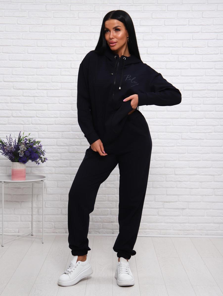 Этот стильный и комфортный костюм с брюками станет идеальным выбором для домашнего уюта и отдыха. Изготовленный из однотонного футера с лайкрой, он обеспечивает отличную посадку и свободу движений. Толстовка на молнии с капюшоном, оформленная шнурком, добавляет нотку стиля и практичности, а слегка спущенные рукава делают образ более расслабленным.
