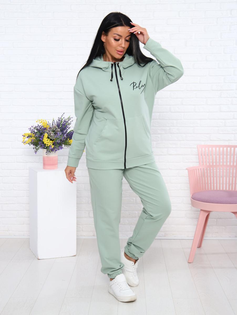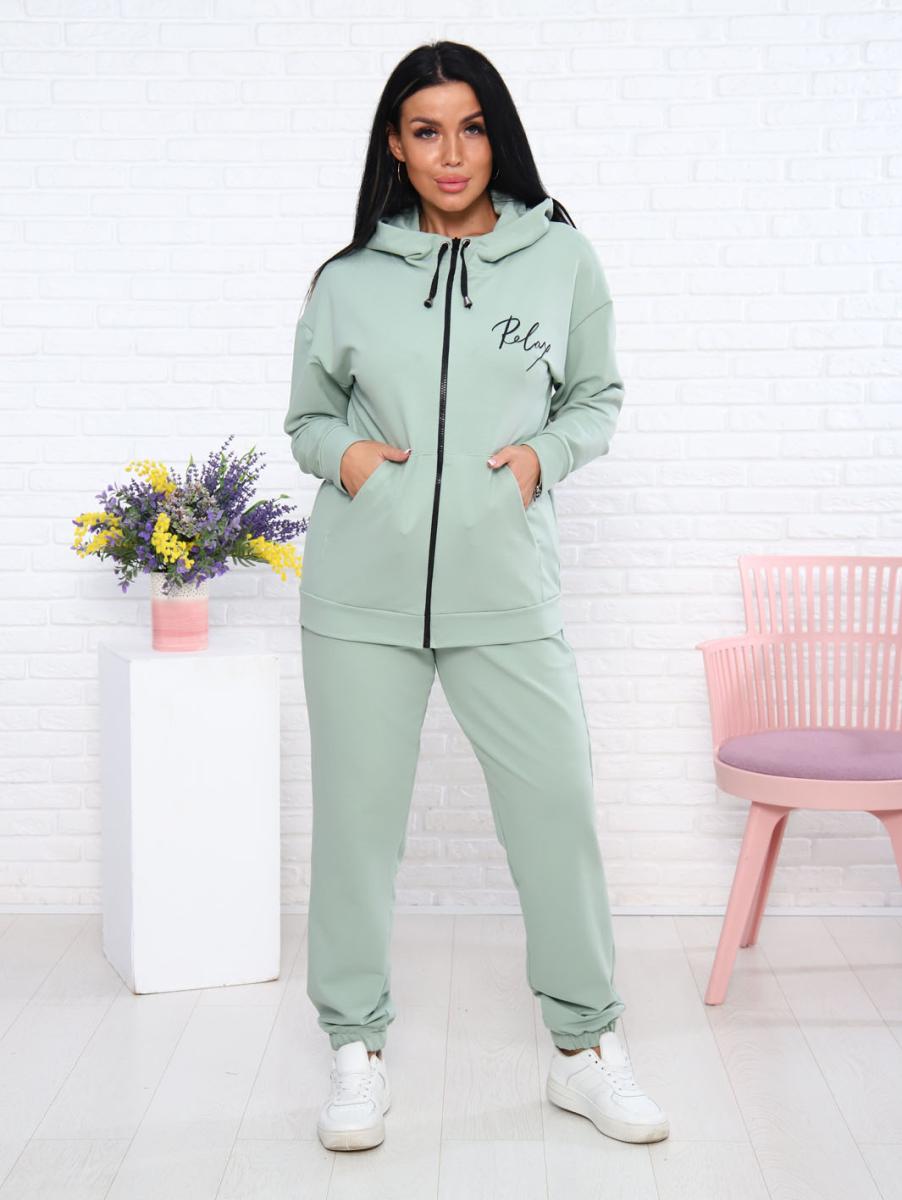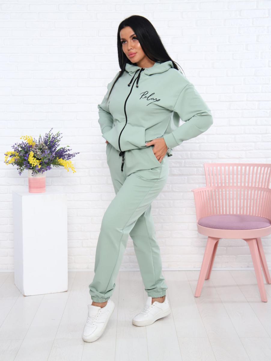 Костюм с брюками, футер с лайкрой 2-х нитка, светлая олива (907-8)