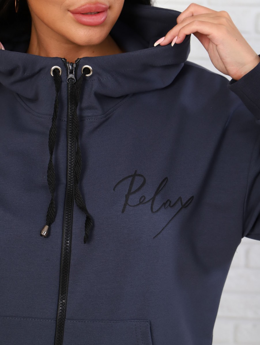 Толстовка на молнии с капюшоном на шнурке обеспечивает комфорт и защиту от холода. Слегка спущенные рукава добавляют легкости, а карманы на полочке придают практичность. Буквенный принт на толстовке придаёт изделию современный стиль.