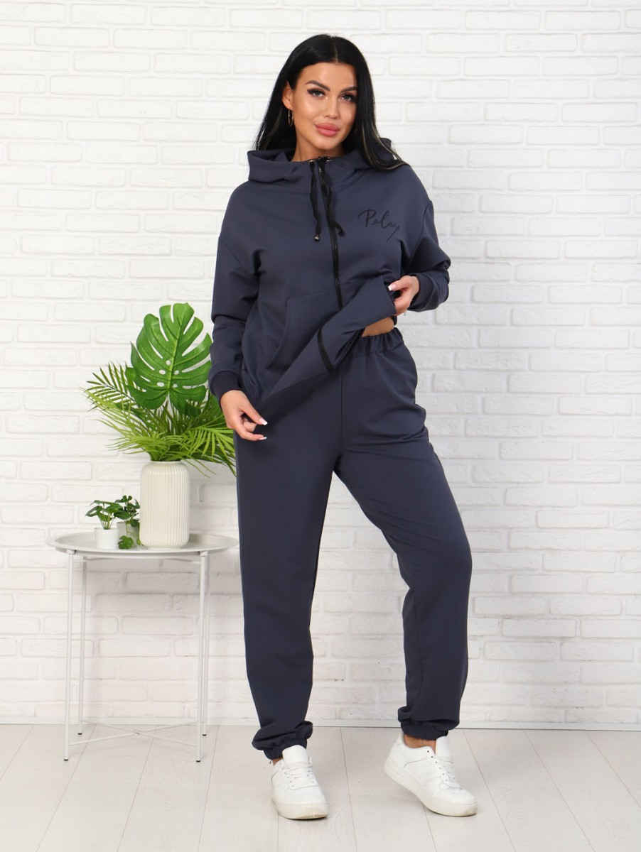 Костюм с брюками, футер с лайкрой 2-х нитка, антрацит (907-6)