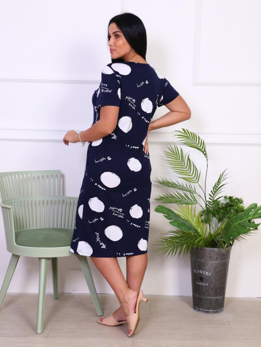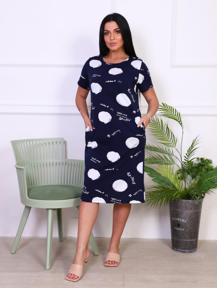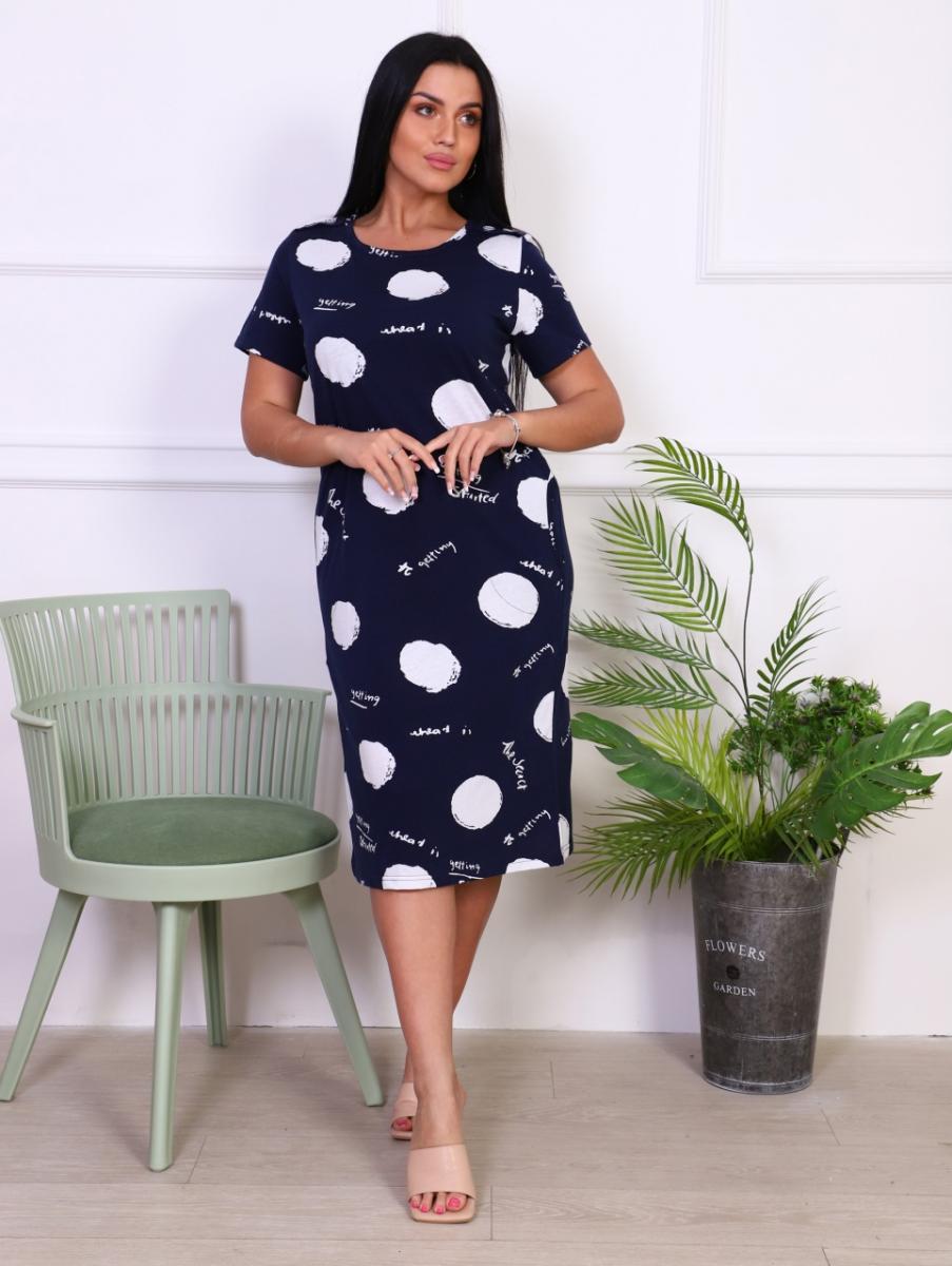 Погрузитесь в уют и стиль с этим великолепным трикотажным платьем! Изготовленное из высококачественной кулирки реактив, оно гарантирует комфорт и приятные ощущения на коже. Нежный синий цвет с оригинальным принтом в белые круги придаёт платью свежесть и изящество.