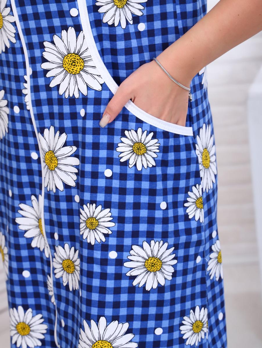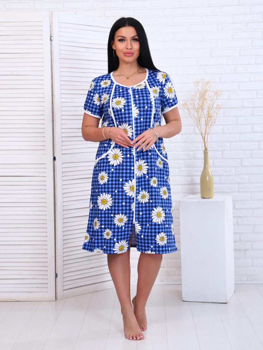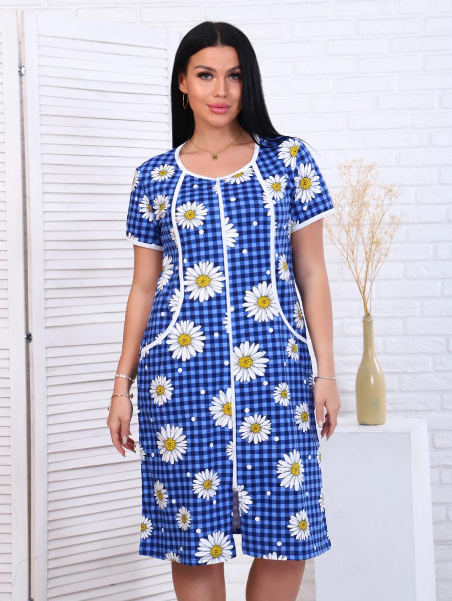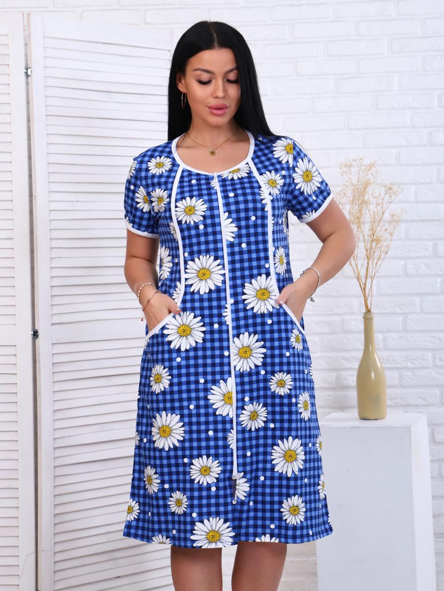 Халат женский на молнии с карманами, ромашка, индиго (893-2)