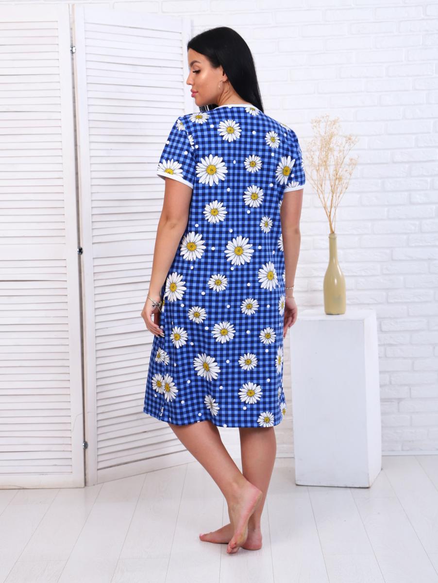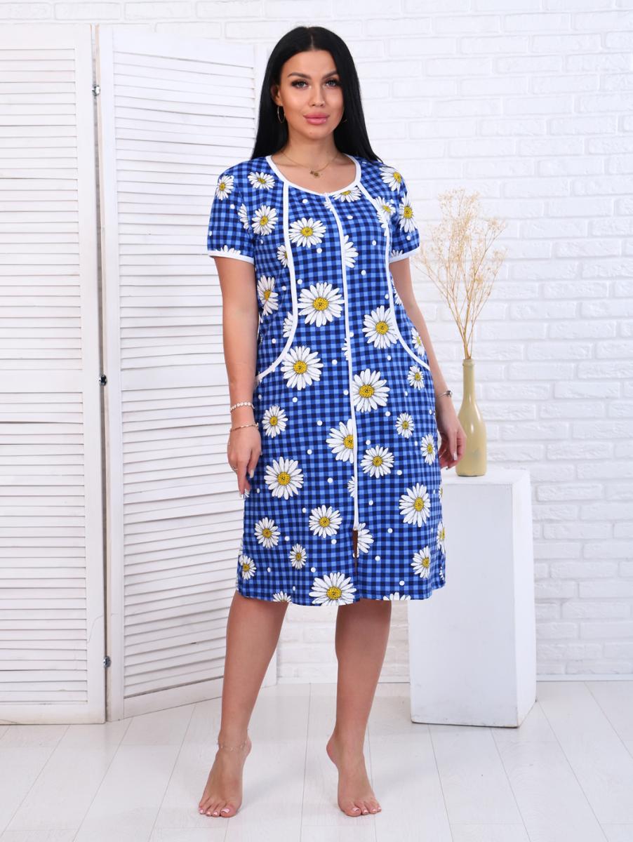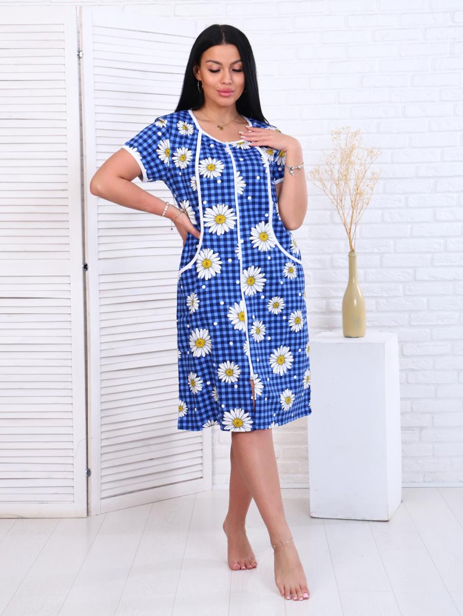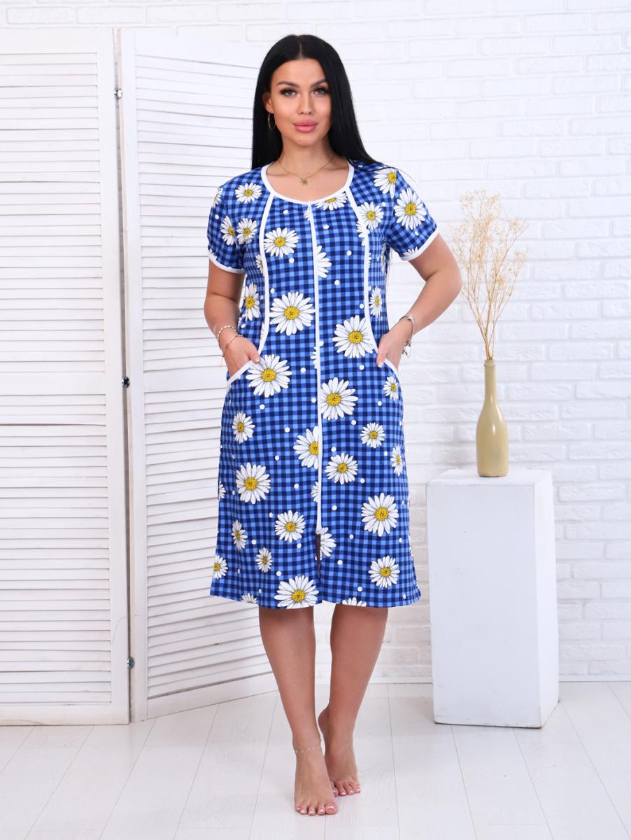Халат женский на молнии с карманами, ромашка, индиго (893-2)