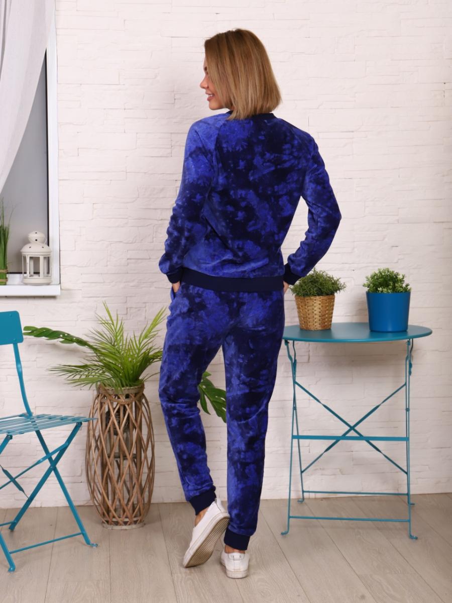 Костюм женский велюровый, индиго, принт "Mary" (672-1)