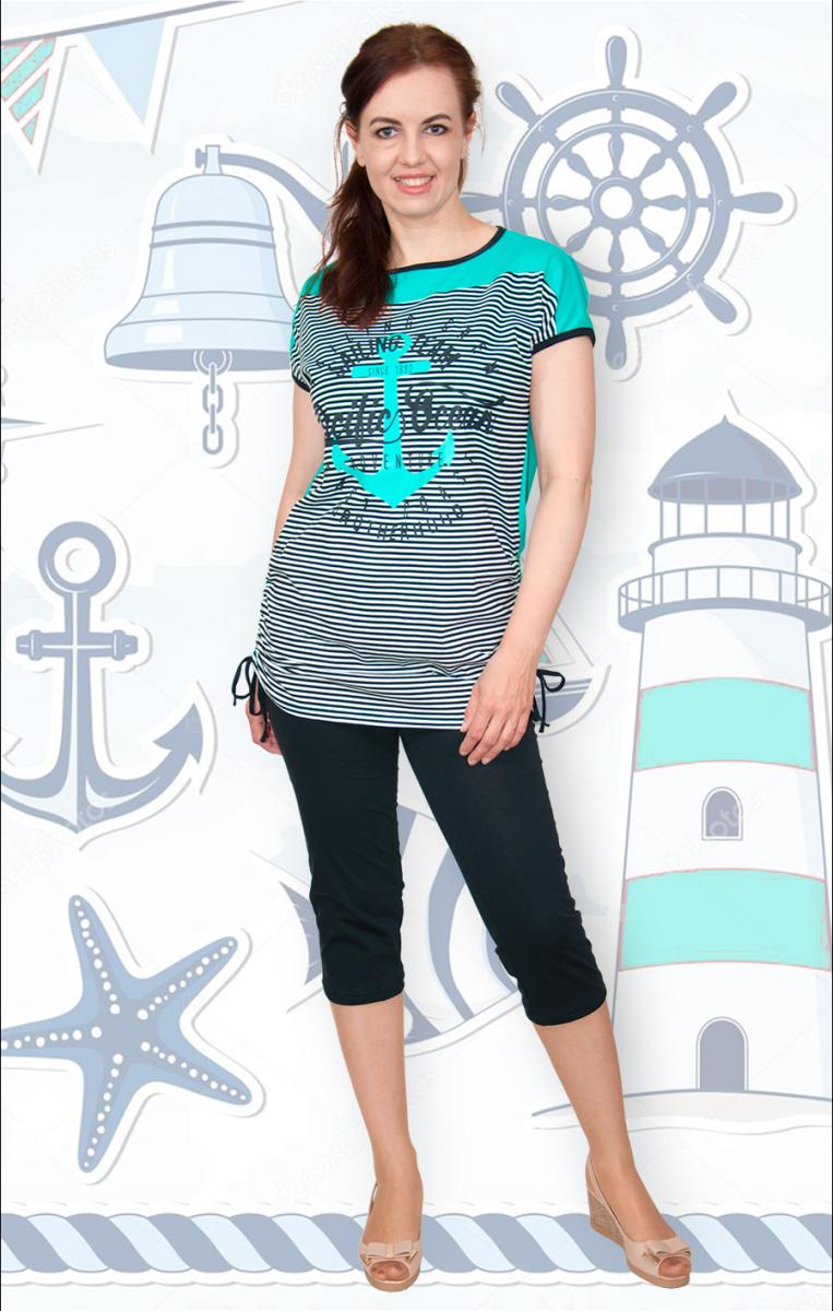 Костюм с бриджами "Морячка" — это идеальный выбор для создания комфортного и стильного образа дома. Изготовленный из 100% хлопка, он обеспечивает мягкость и воздухопроницаемость, что особенно важно для повседневной носки.