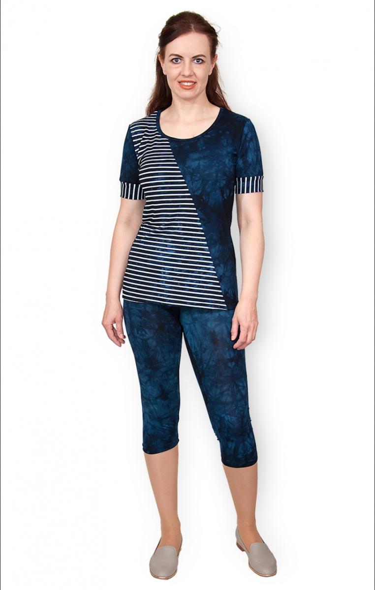 Костюм с бриджами, вискоза - батик, синий (368-2)