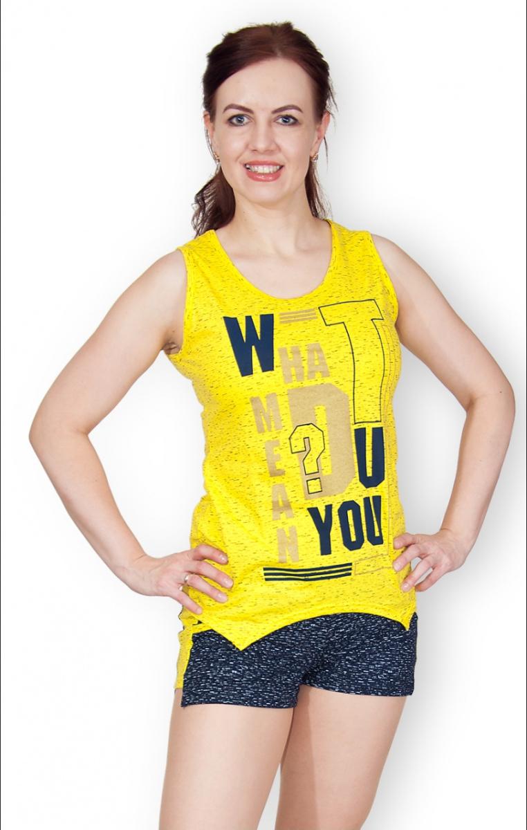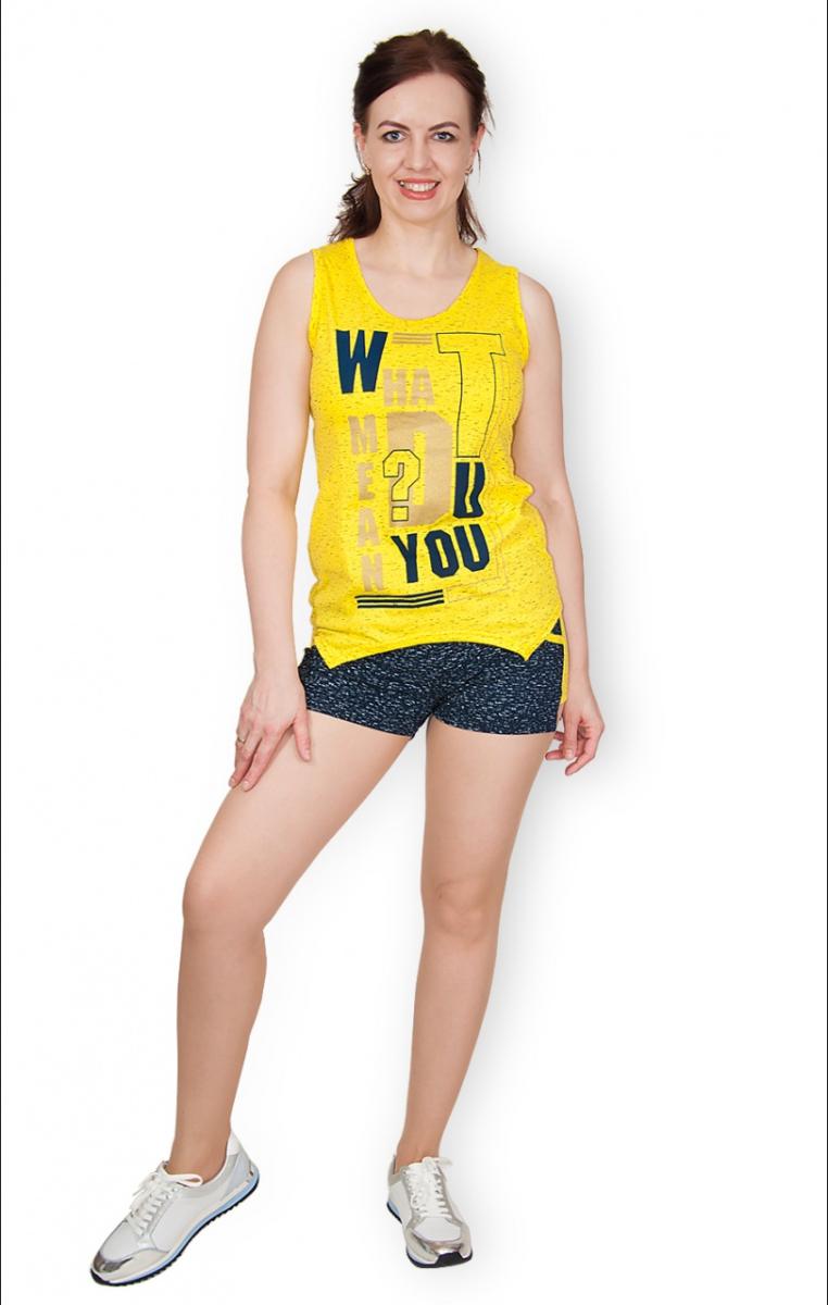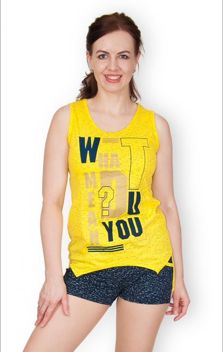 Этот яркий желтый костюм с шортами станет отличным дополнением вашего домашнего гардероба. Изготовленный из 100% хлопка, он подарит вам невероятный комфорт и легкость в носке. Майка украшена модным принтом, который добавляет стильности и поднимает настроение.