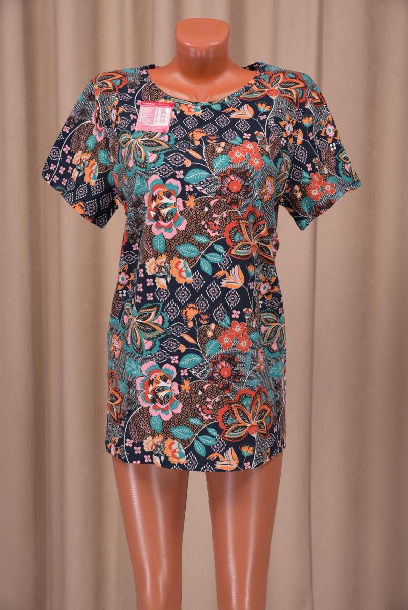 Яркий и насыщенный принт с цветами и геометрическими узорами добавляет изюминку в ваш повседневный гардероб. Удобный крой с короткими рукавами позволяет свободно двигаться и чувствовать себя непринужденно в любой ситуации.