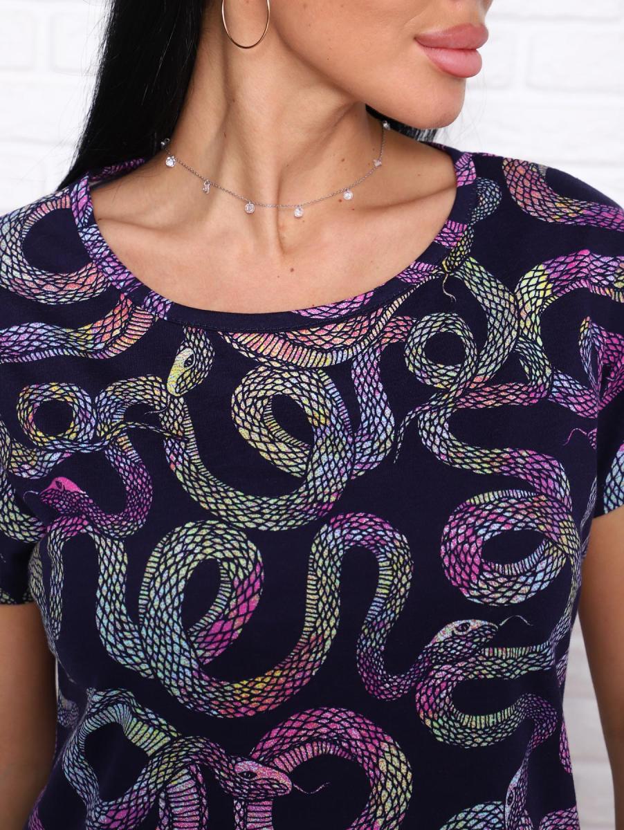 Эта туника станет отличным дополнением вашего гардероба, сочетая стиль и комфорт. Прямой свободный крой и спущенный рукав обеспечивают свободу движений и невероятное удобство на протяжении всего дня. Фигурный низ добавляет изюминку, подчеркивая вашу индивидуальность. Туника выполнена из мягкой и дышащей ткани кулирка реактив, состоящей на 100% из хлопка, что делает ее идеальной для теплых дней. Яркая расцветка с оригинальным дизайном привлекает внимание и позволяет создать множество стильных образов. Преимущества: