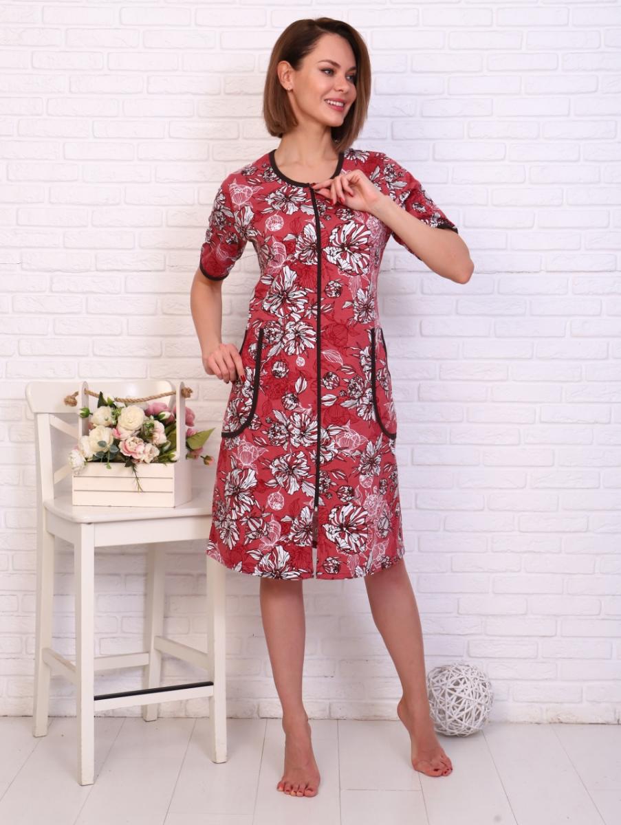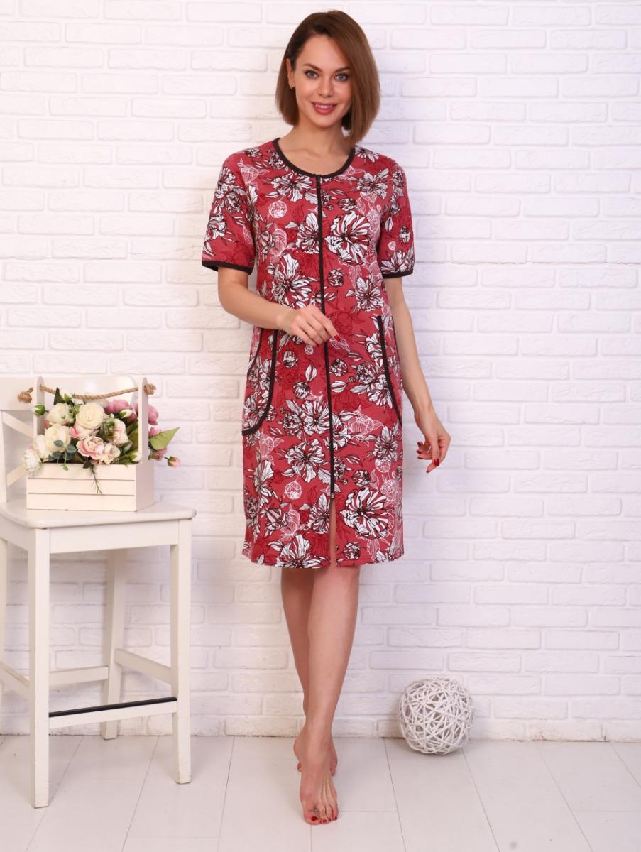 Халат женский на молнии с карманами, терракотовый (812-2)