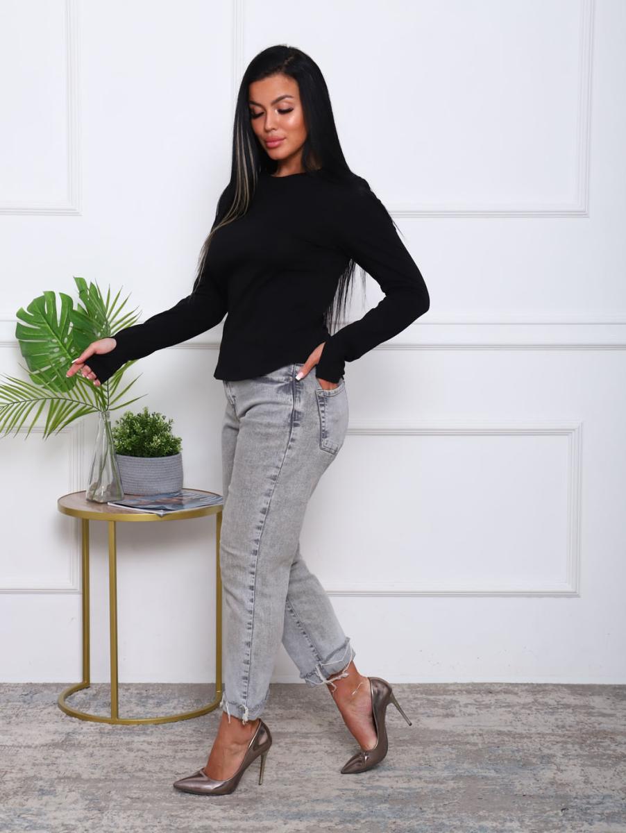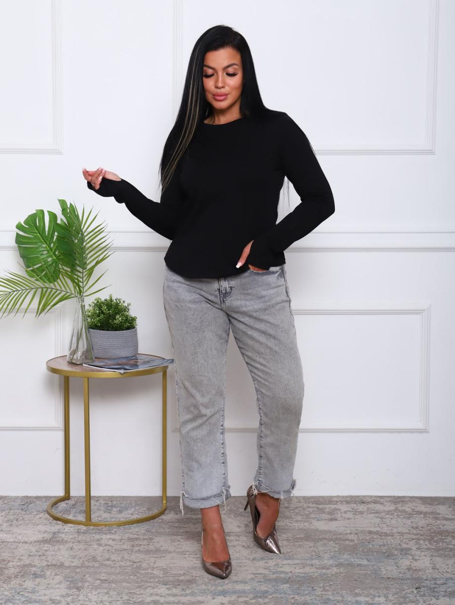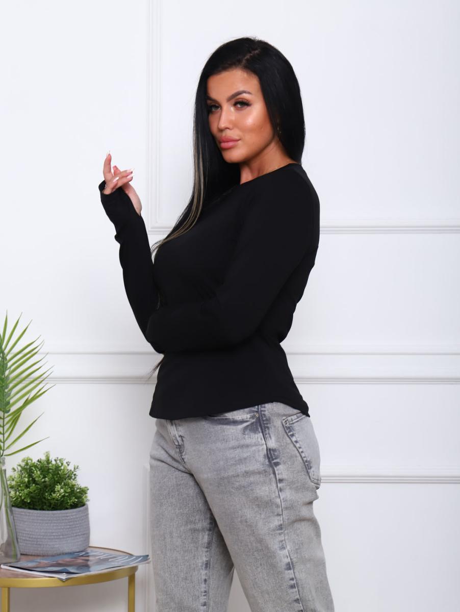 Этот стильный черный лонгслив с длинным рукавом станет незаменимой частью вашего гардероба. Изготовленный из высококачественной кулирки с добавлением лайкры, он обеспечивает идеальное сочетание комфорта и элегантности. Округлая горловина с обтачкой и аккуратно обработанные швы добавляют изящества и делают эту кофту идеальной для повседневной носки и особых случаев.