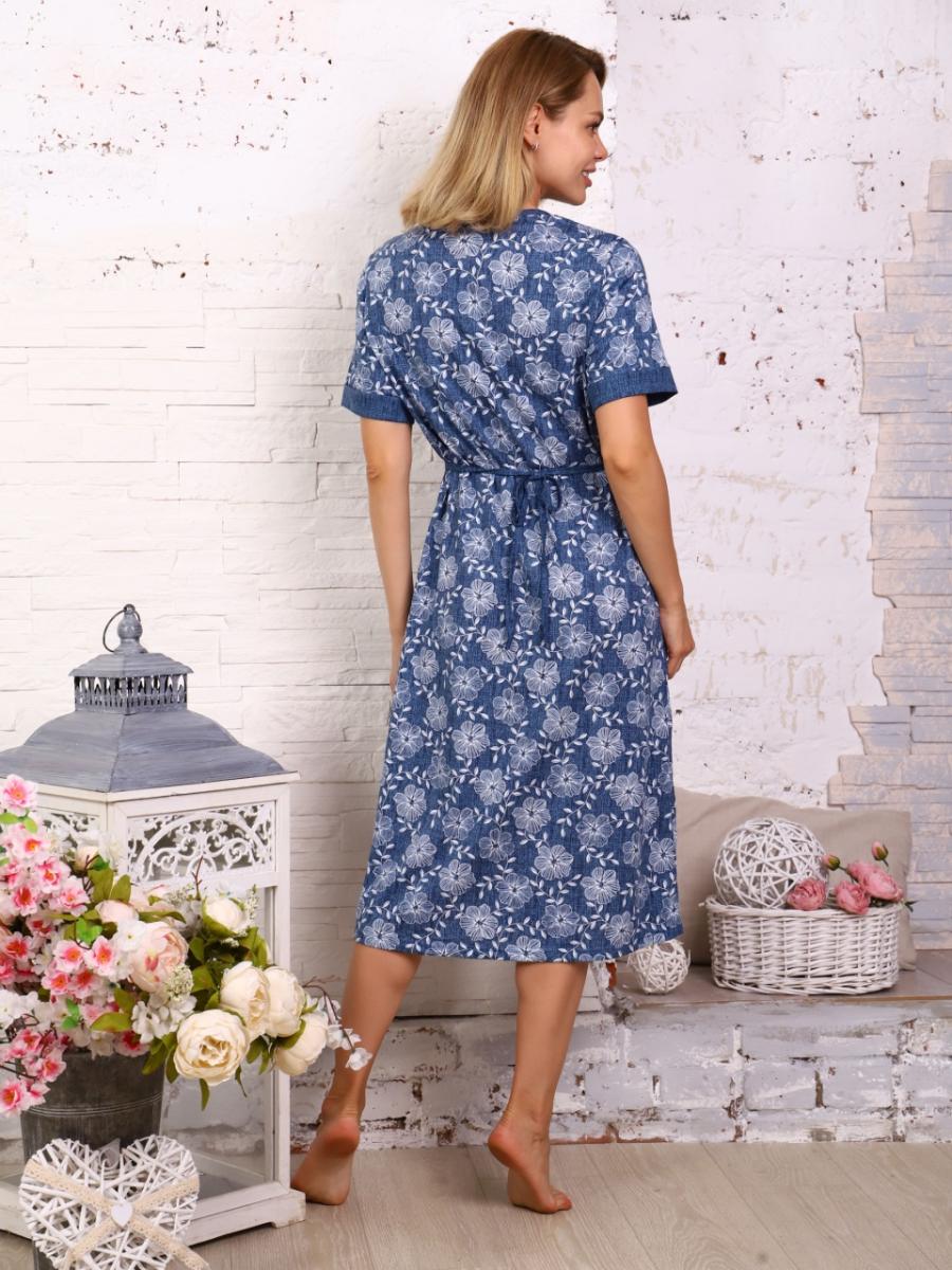 Дизайн халата продуман до мелочей: рельефы подчеркивают фигуру, а втачные рукава с манжетами добавляют ему элегантности. Удобные карманы в боковых швах позволяют держать под рукой необходимые мелочи, а пришитые хлястики из окантовки в виде пояса акцентируют талию и придают образу завершённость.