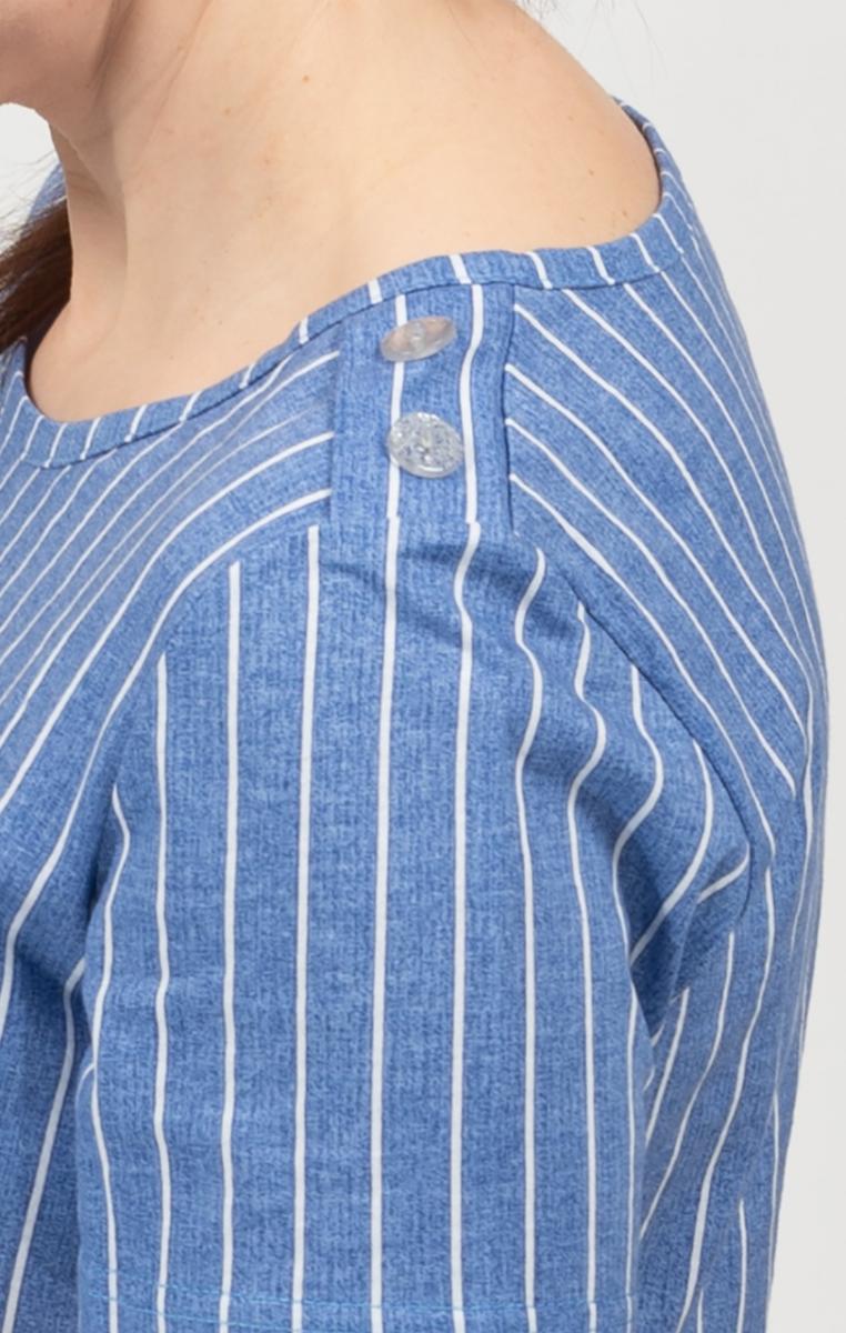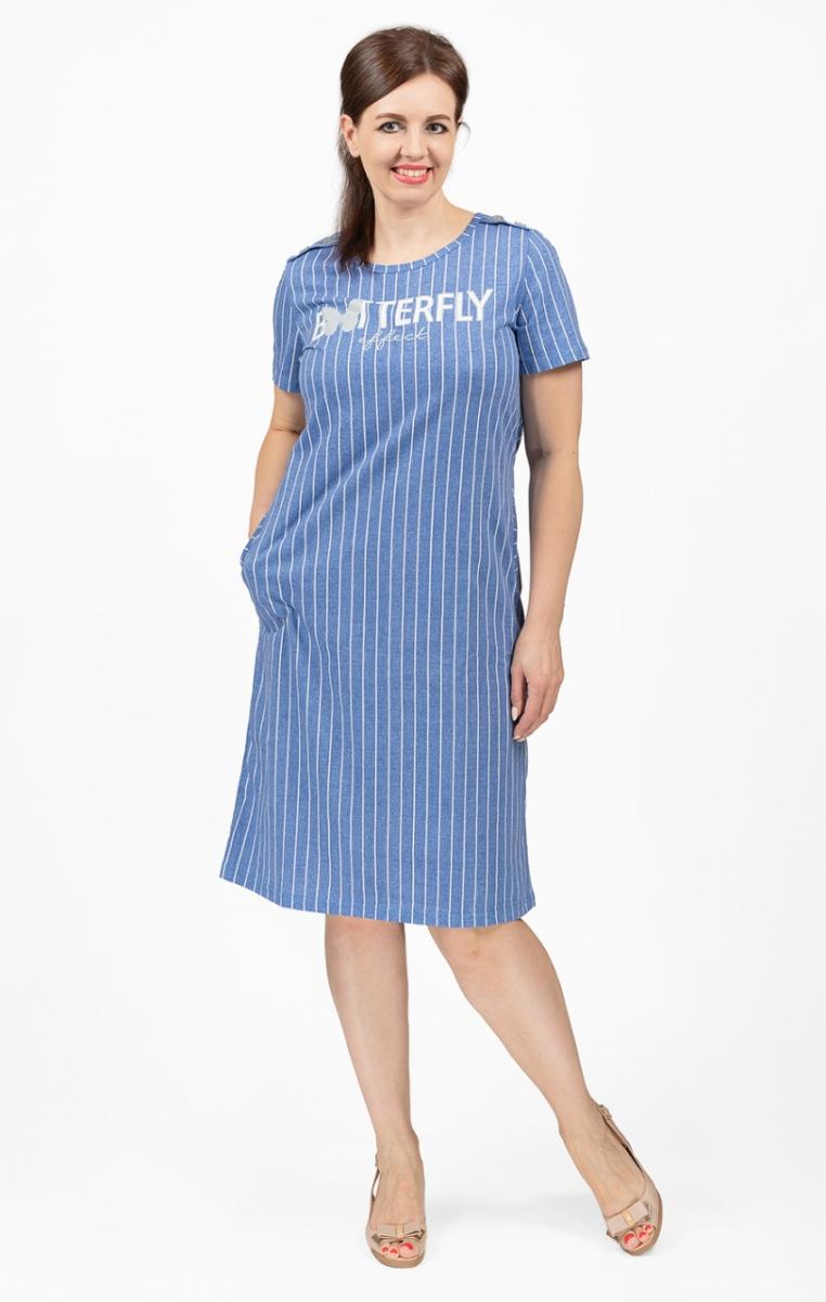 Платье с карманами, принт "Batterfly", голубой полоска (713-1)