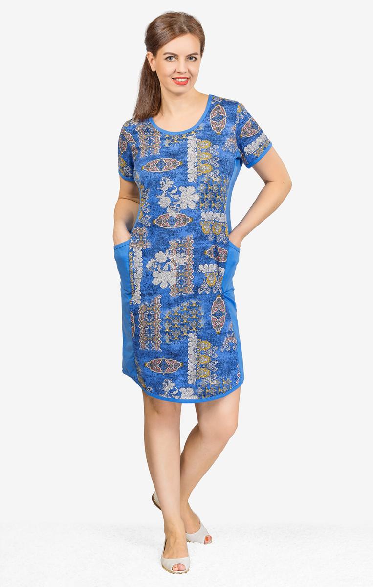Туника представлена в ярком цвете с голубой отделкой, что делает ее идеальным выбором для теплых дней. Накладные карманы добавляют функциональности и удобства, позволяя держать под рукой мелкие вещи.