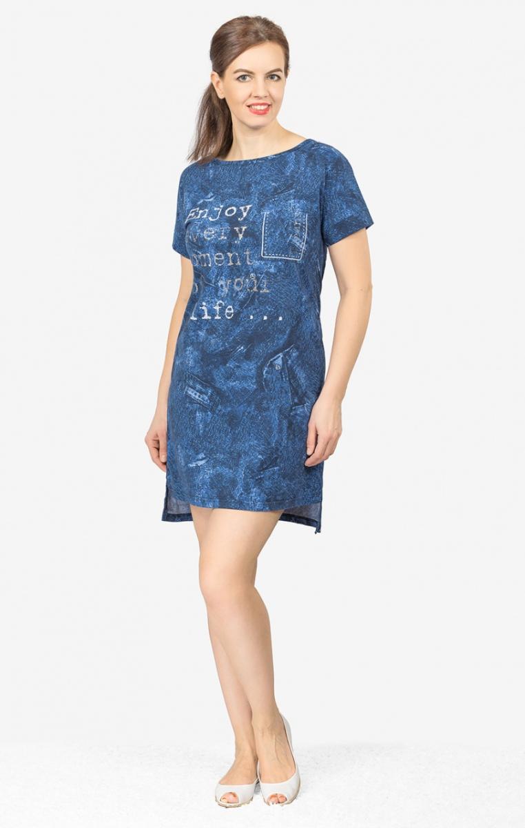 Туника, двойной принт, джинса, серо-синий (541-3)