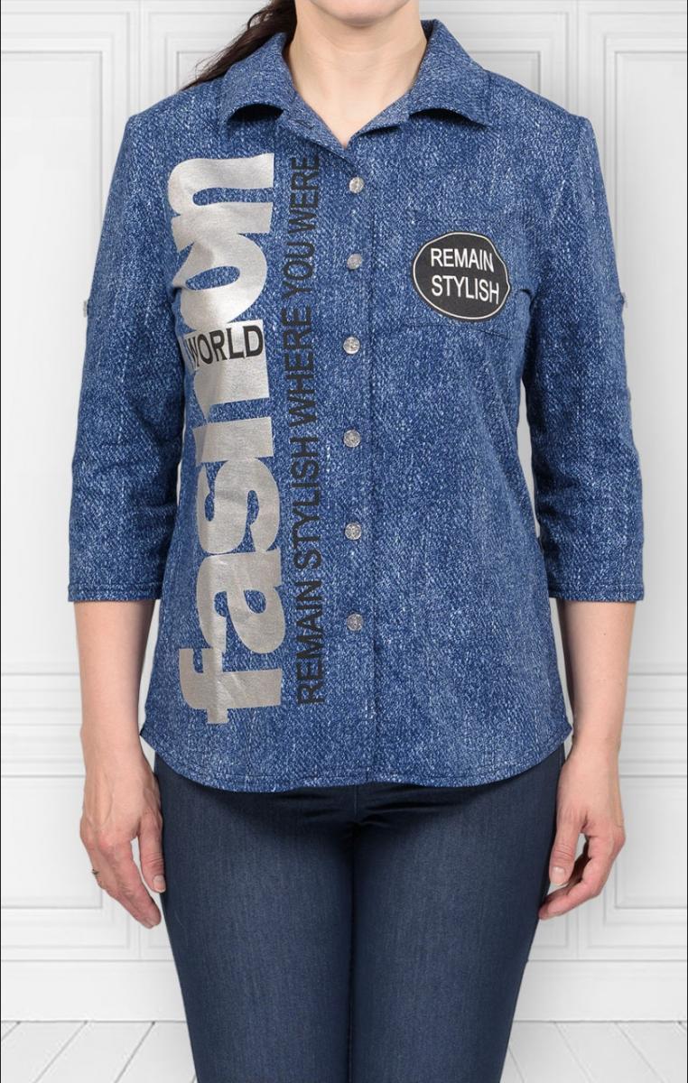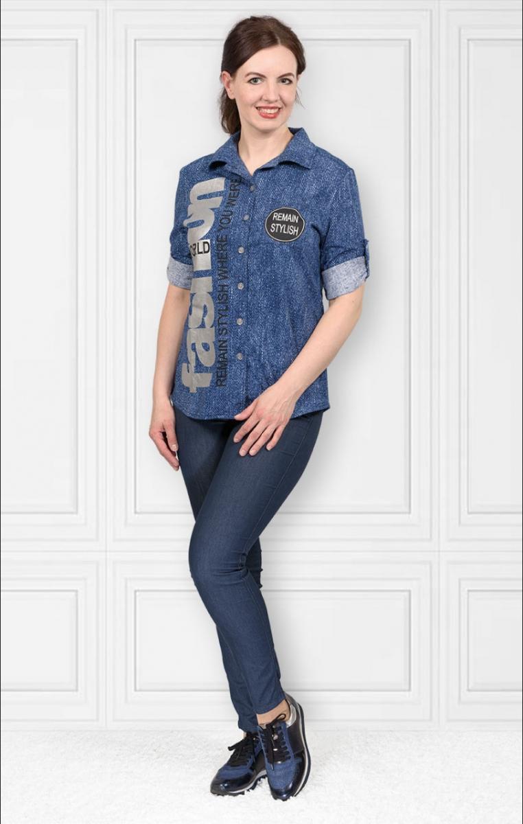 Рубашка на пуговицах с двойным принтом (466-1)