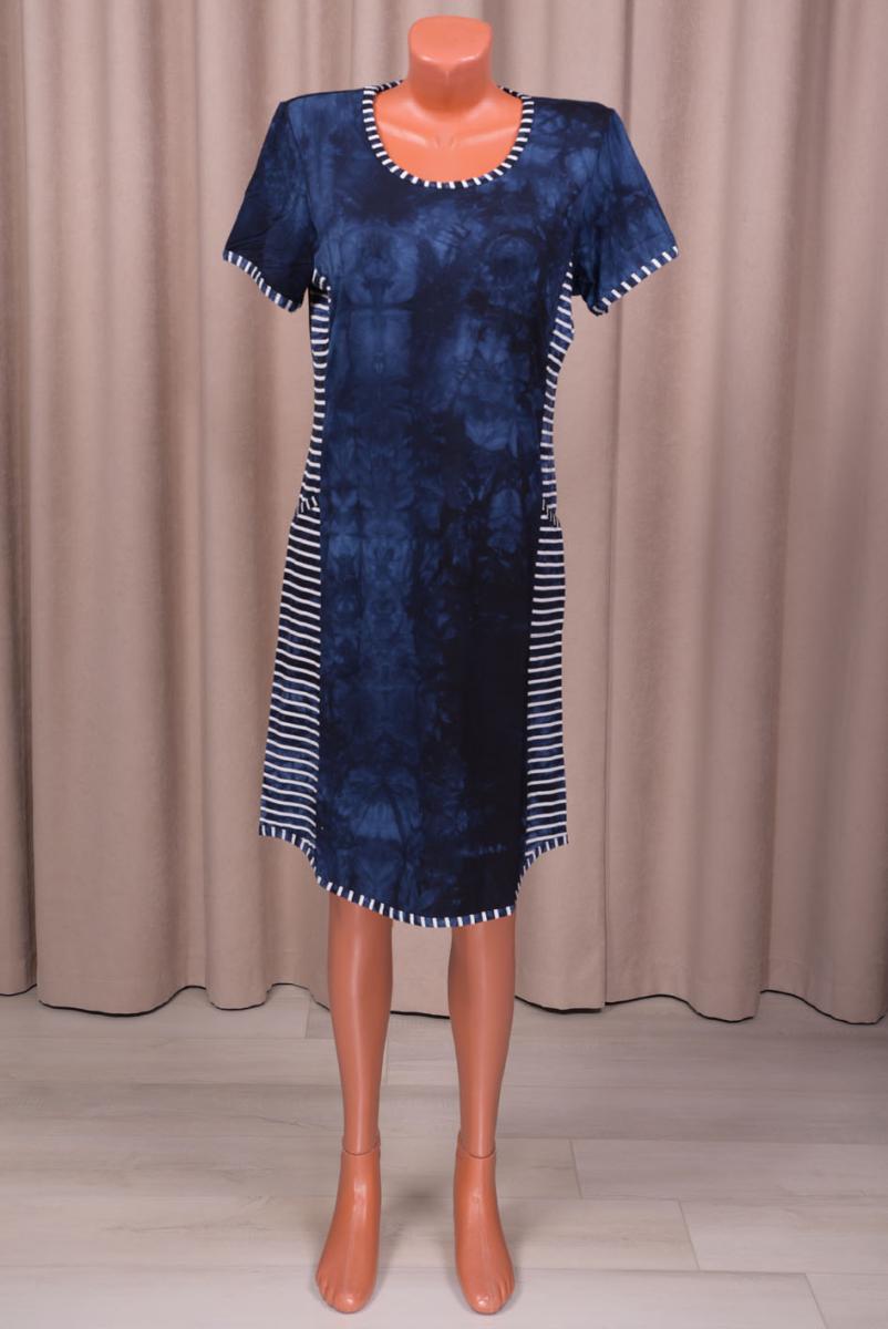 Эта стильная туника из вискозы – идеальный выбор для создания комфортного и элегантного образа. Яркий синий цвет с уникальным батиковым принтом придаёт ей оригинальность, а сочетание с полосатыми боковыми вставками добавляет игривости. Изготовленная из высококачественной ткани, туника обеспечивает отличную воздухопроницаемость и приятные тактильные ощущения. Карманы, расположенные в боковых рельефах, не только практичны, но и подчеркивают современный дизайн. Преимущества этой туники: