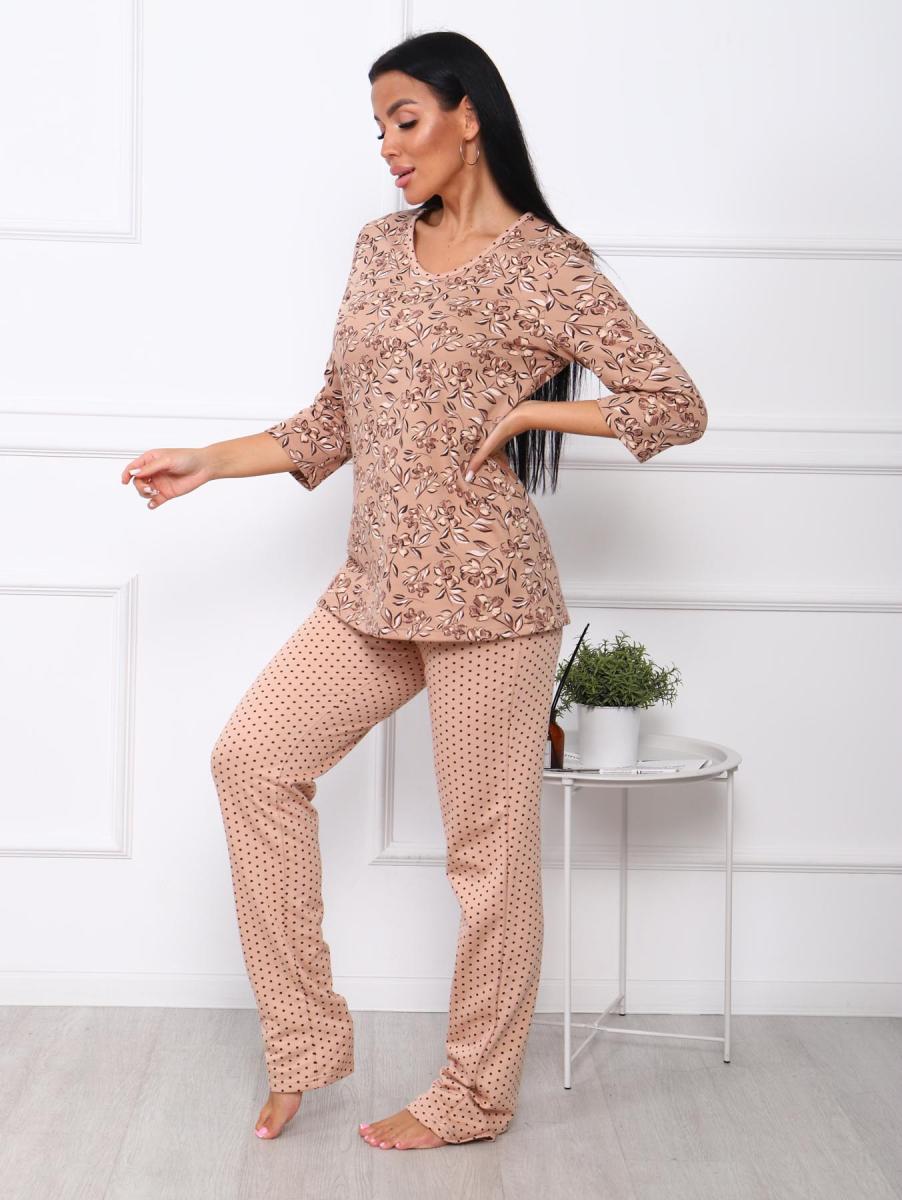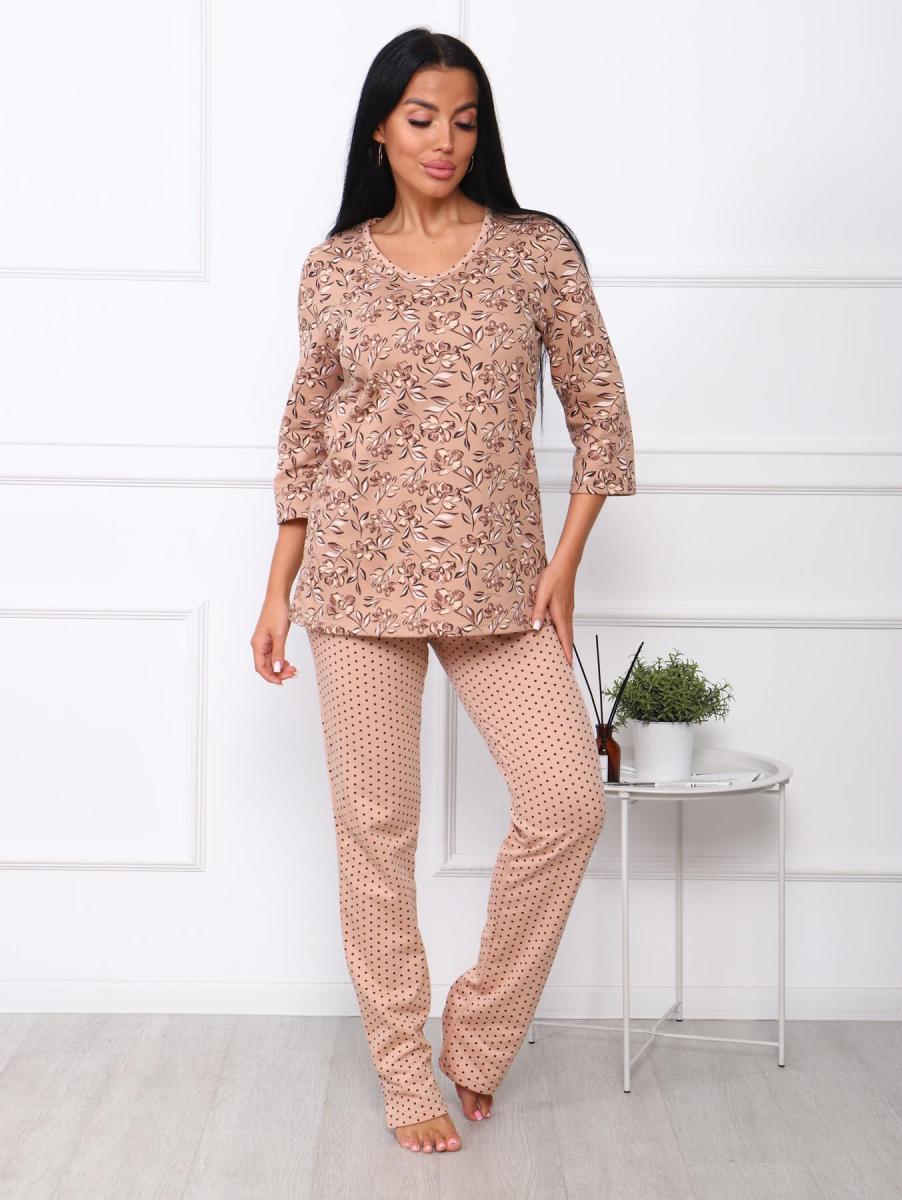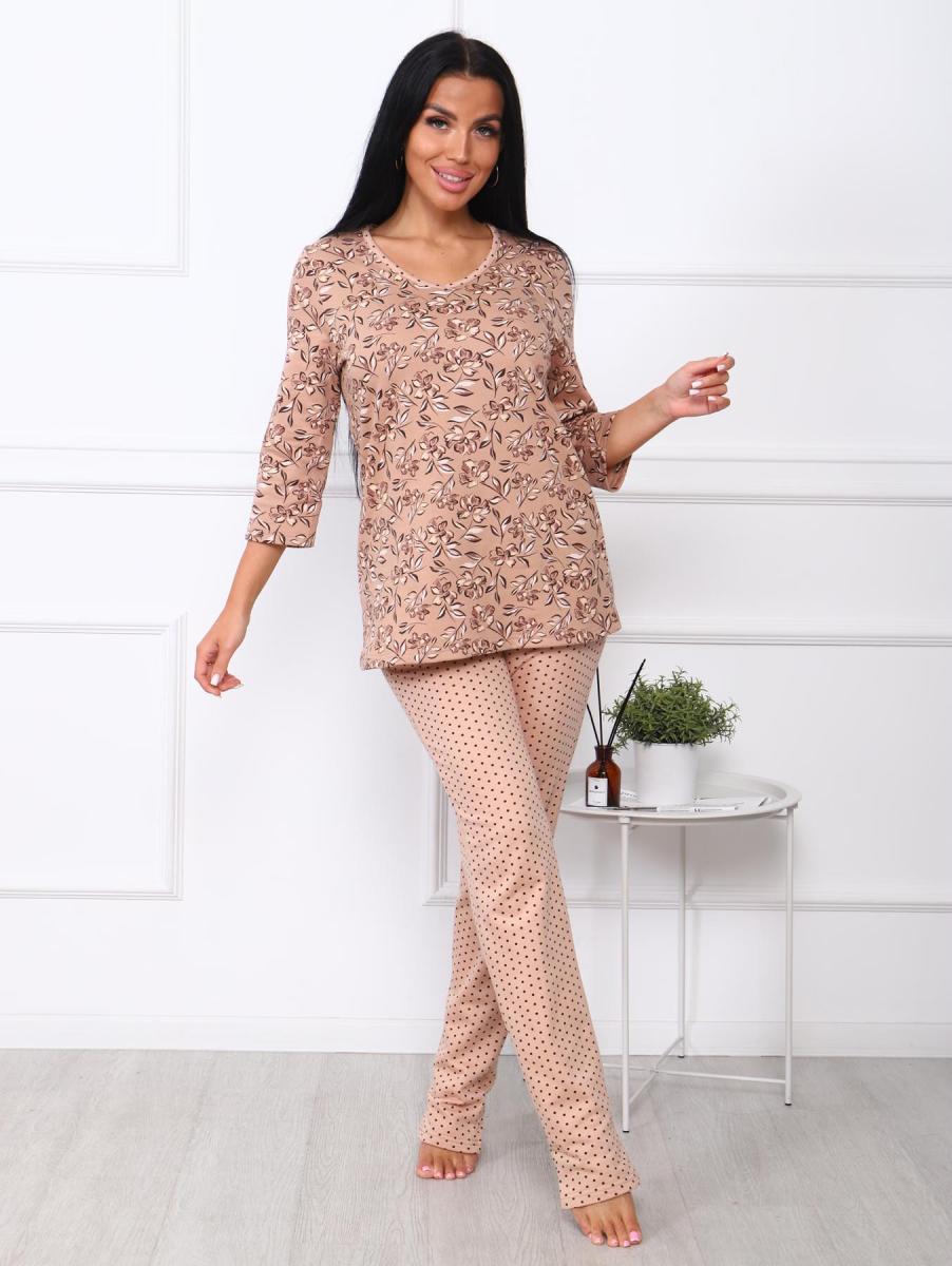 Пижама с брюками футер с начёсом (01013, бежевый)