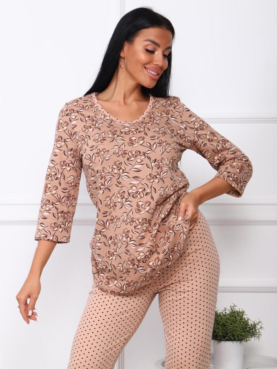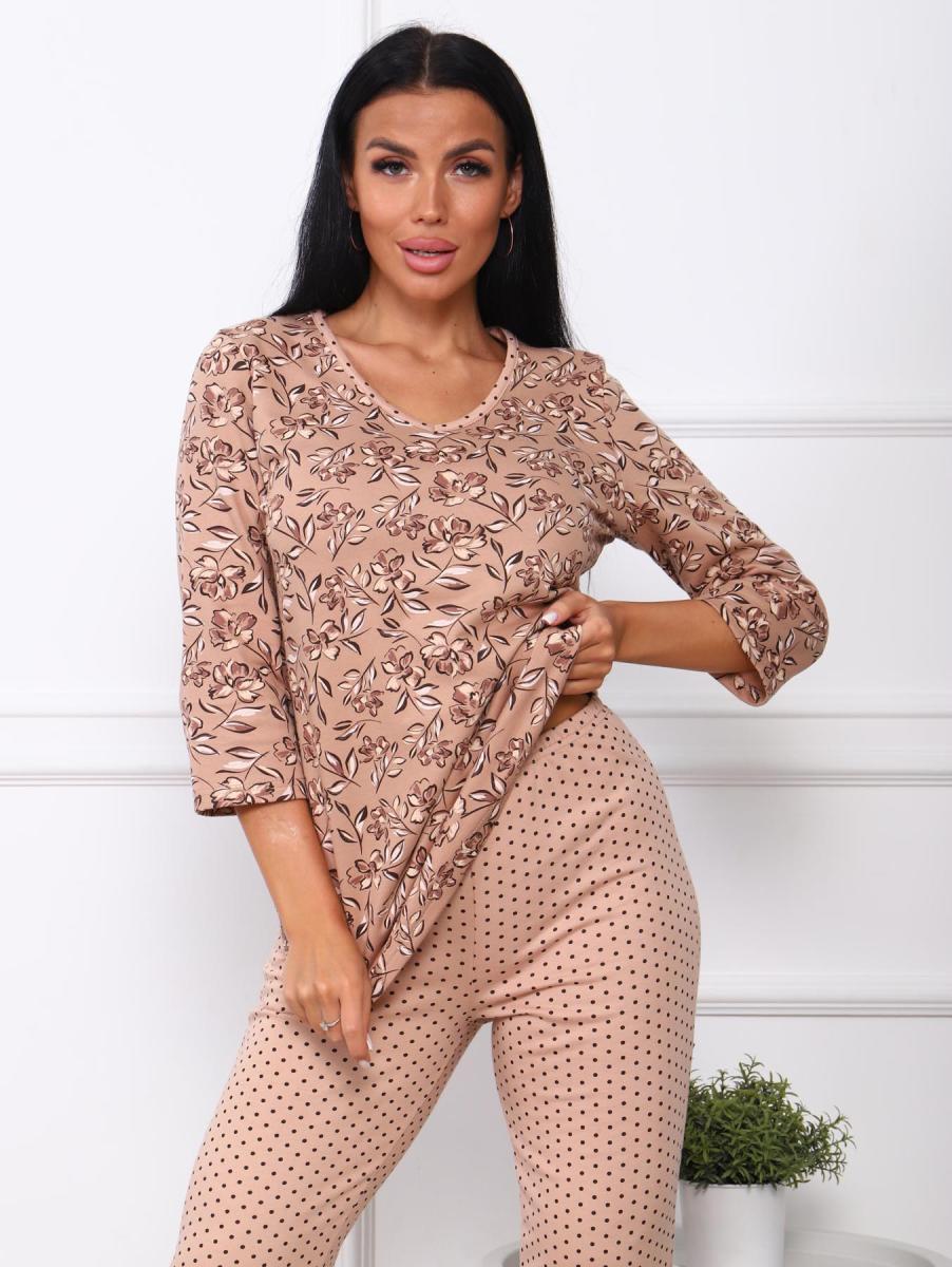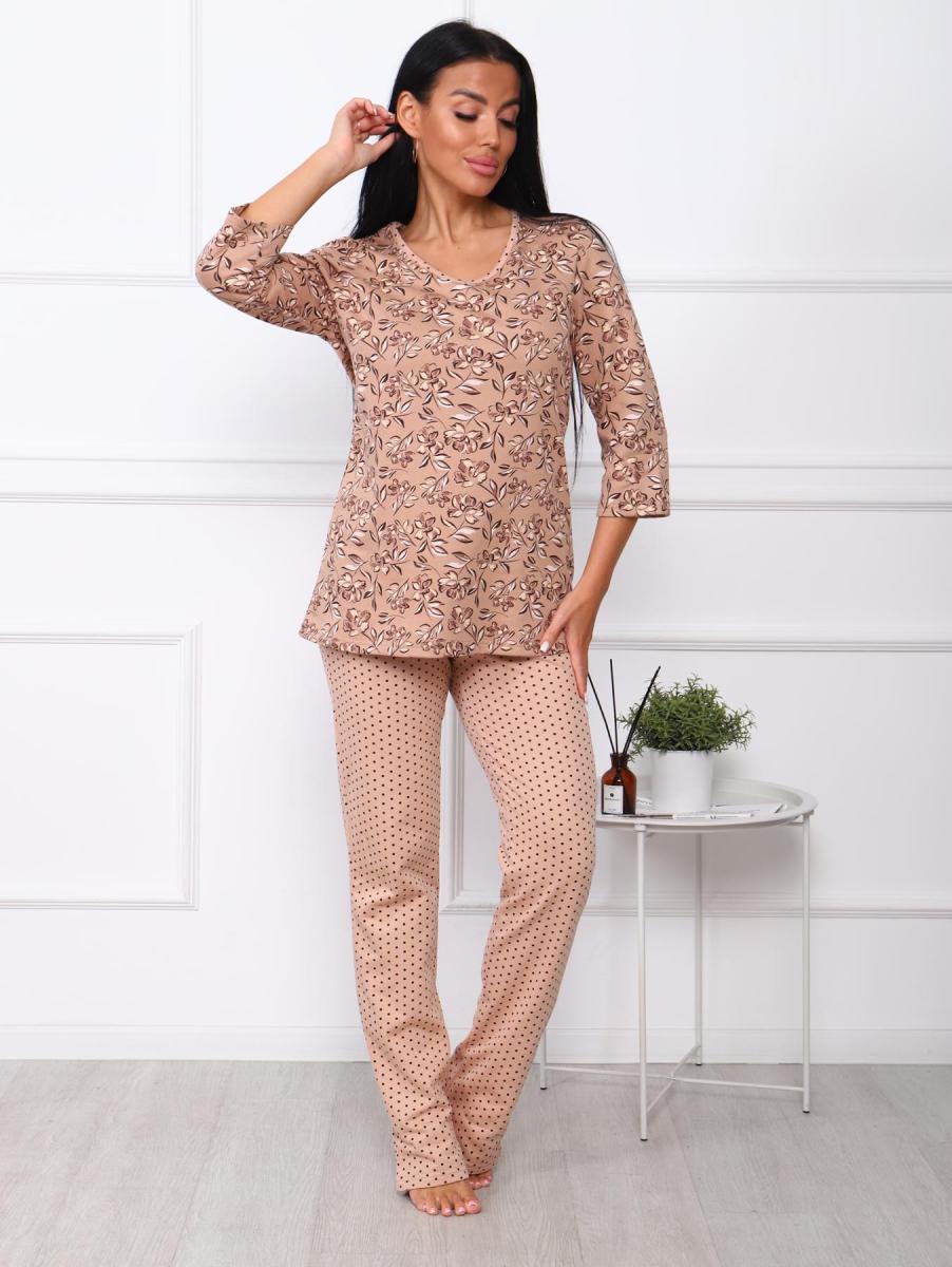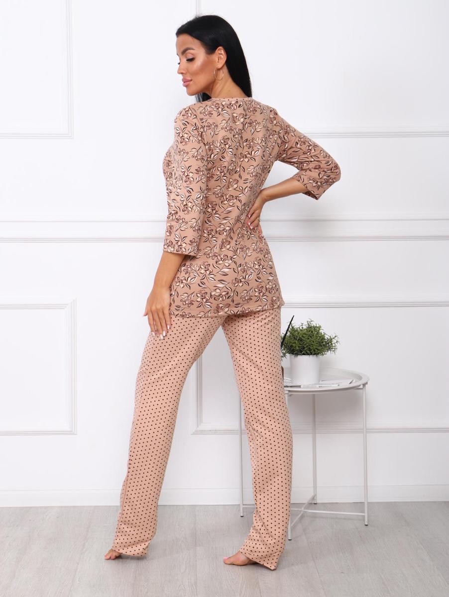 Пижама с брюками футер с начёсом (01013, бежевый)