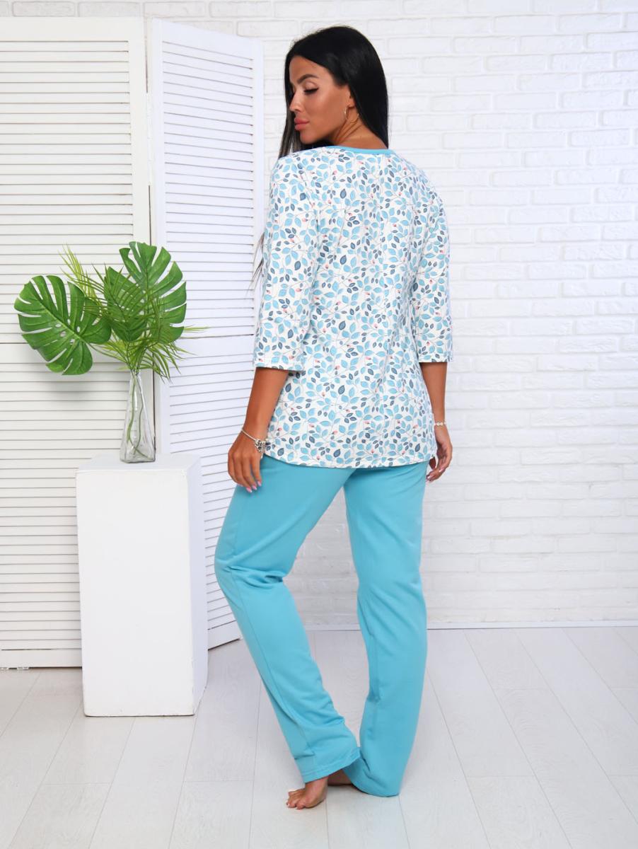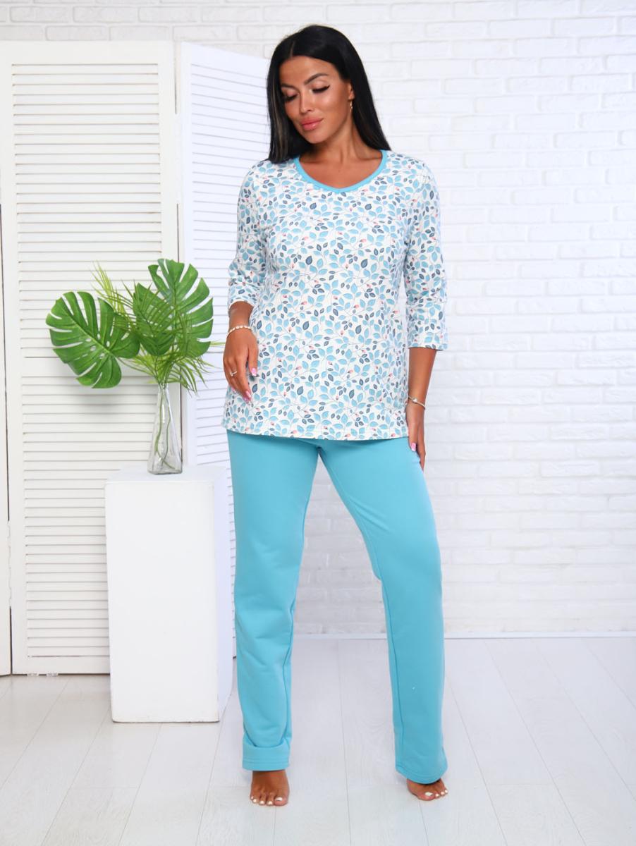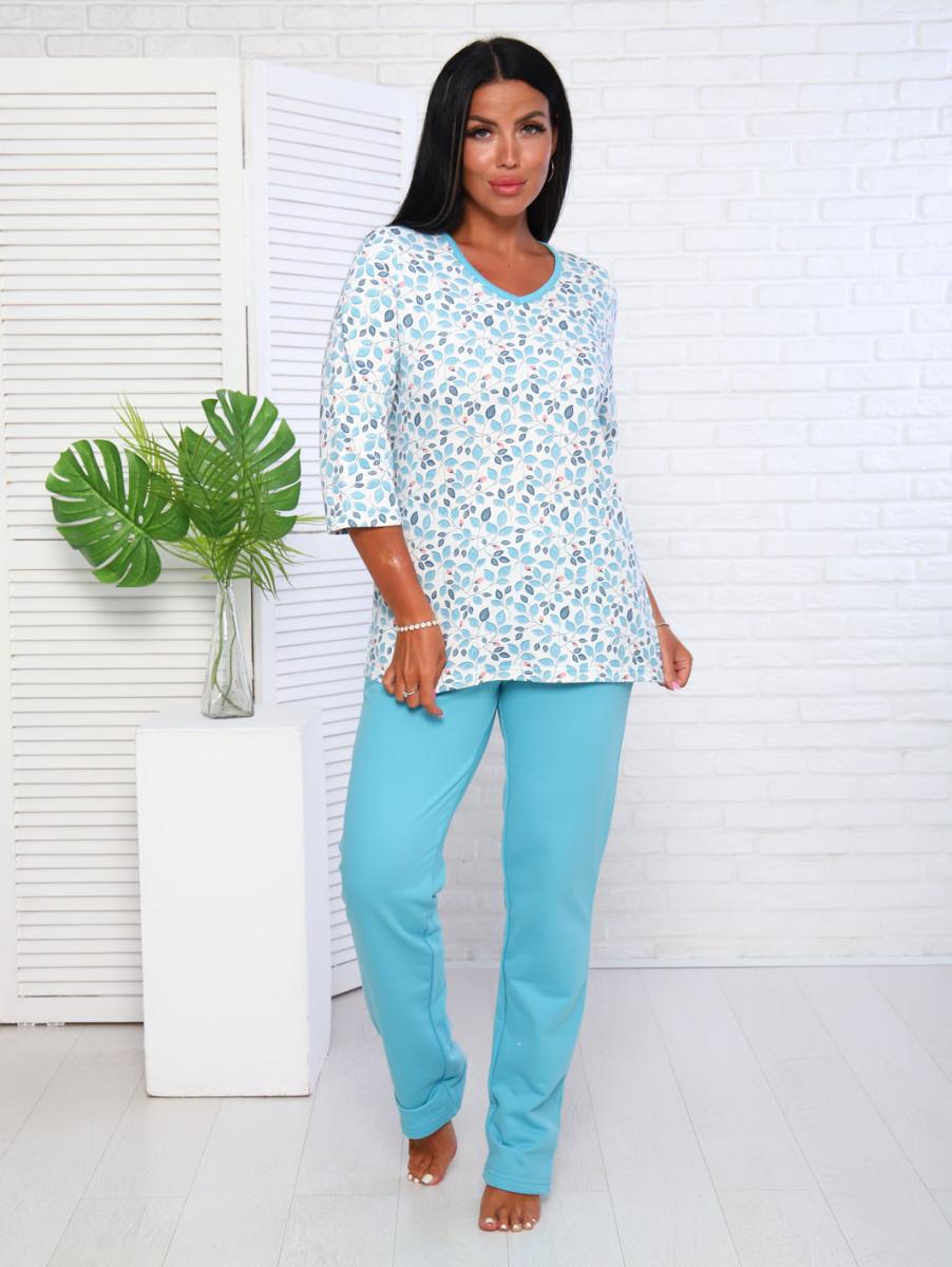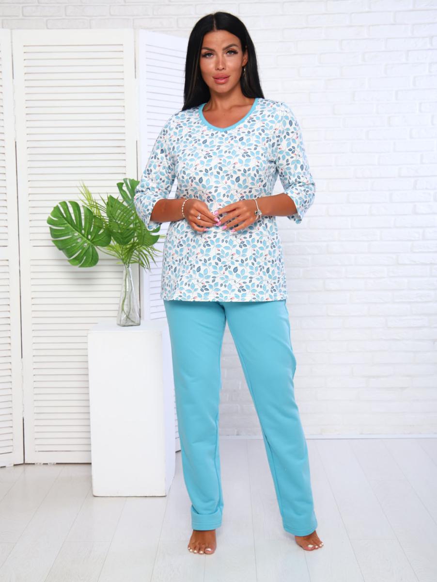 Пижама с брюками футер с начёсом, голубой (949-2)