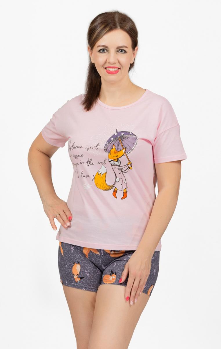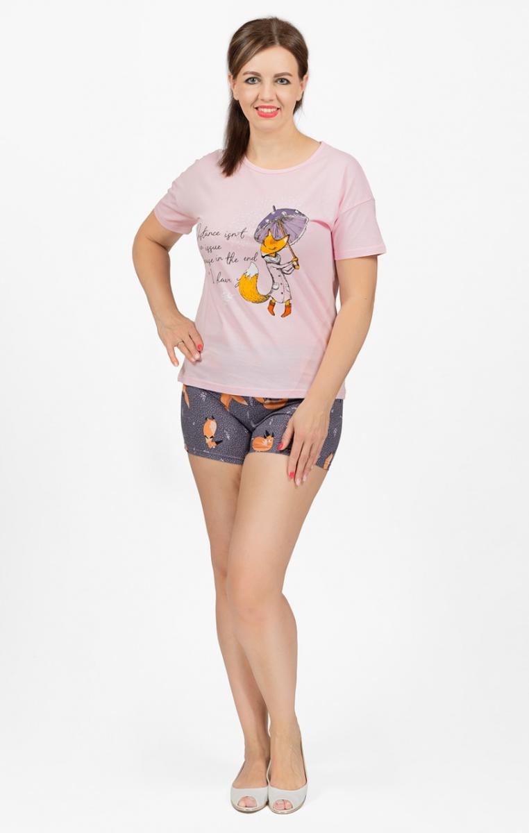 Пижама с шортами, принт "Лисичка с зонтиком", розовый (693-1)