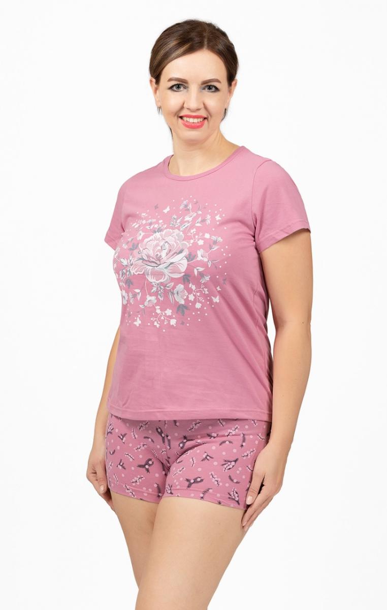 Пижама с шортами, принт, сухая роза (633-3)