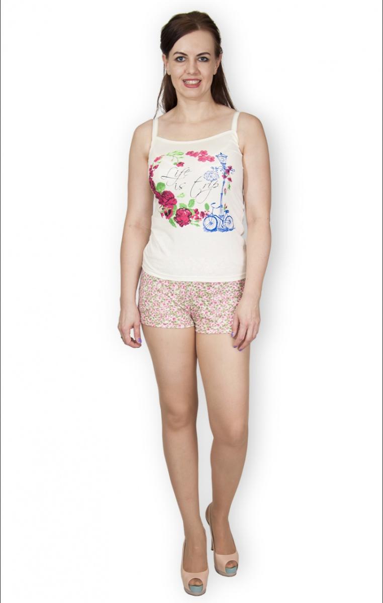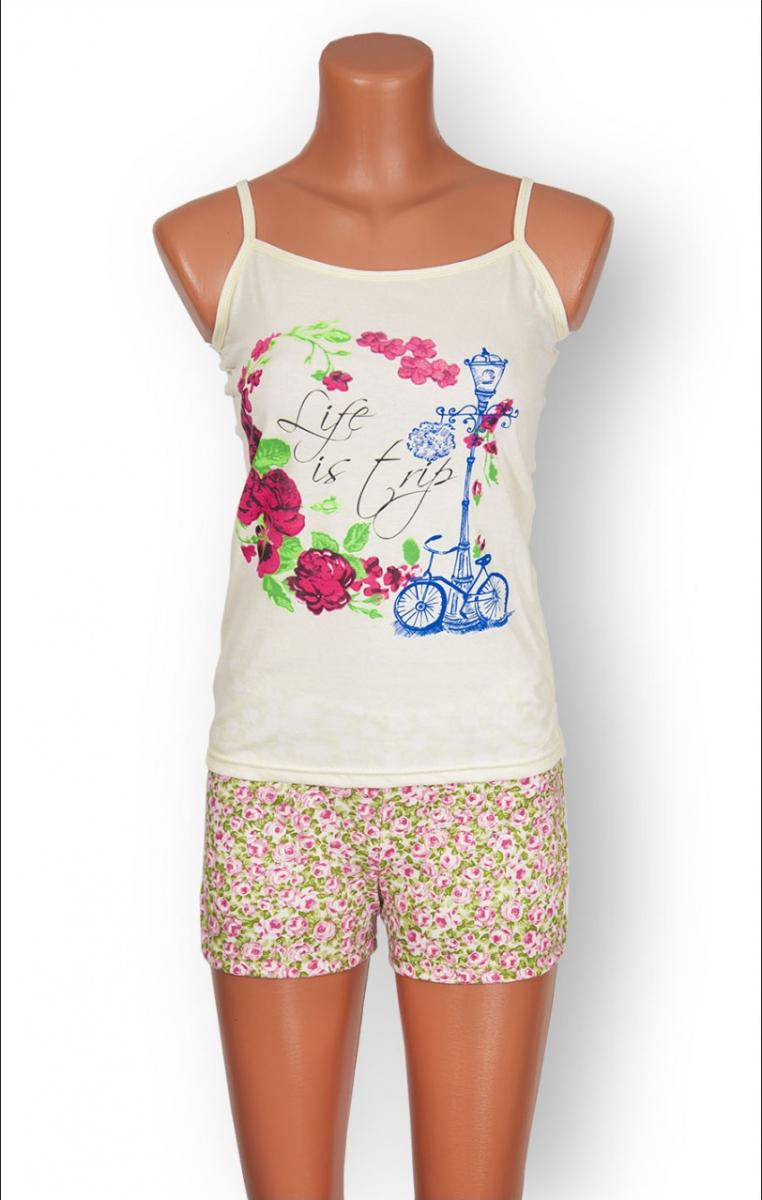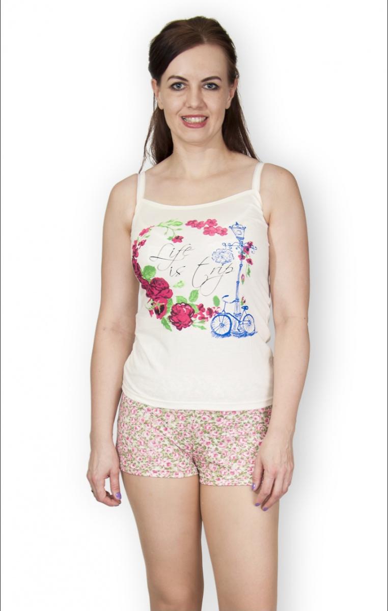 Пижама с шортами, фон экрю, принт "Life Is Trip" (284)