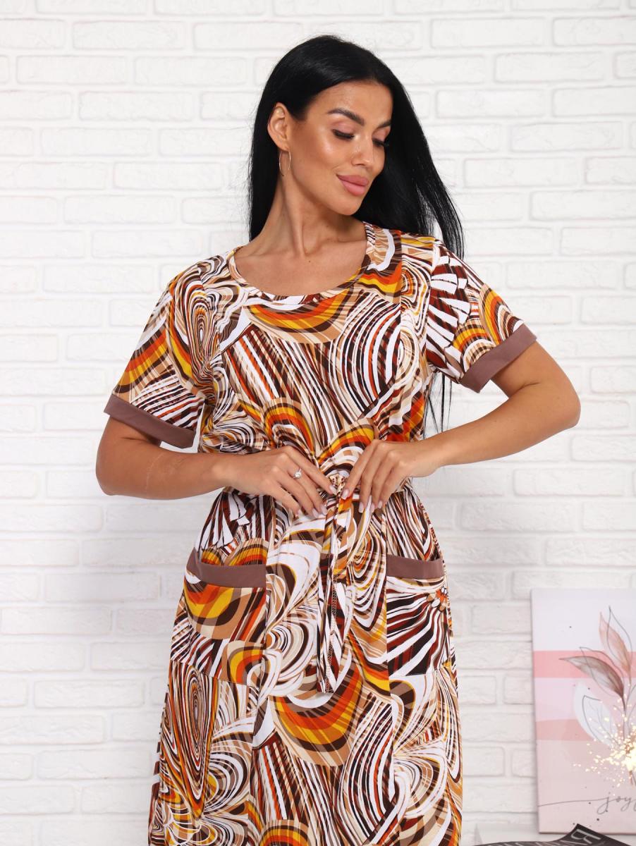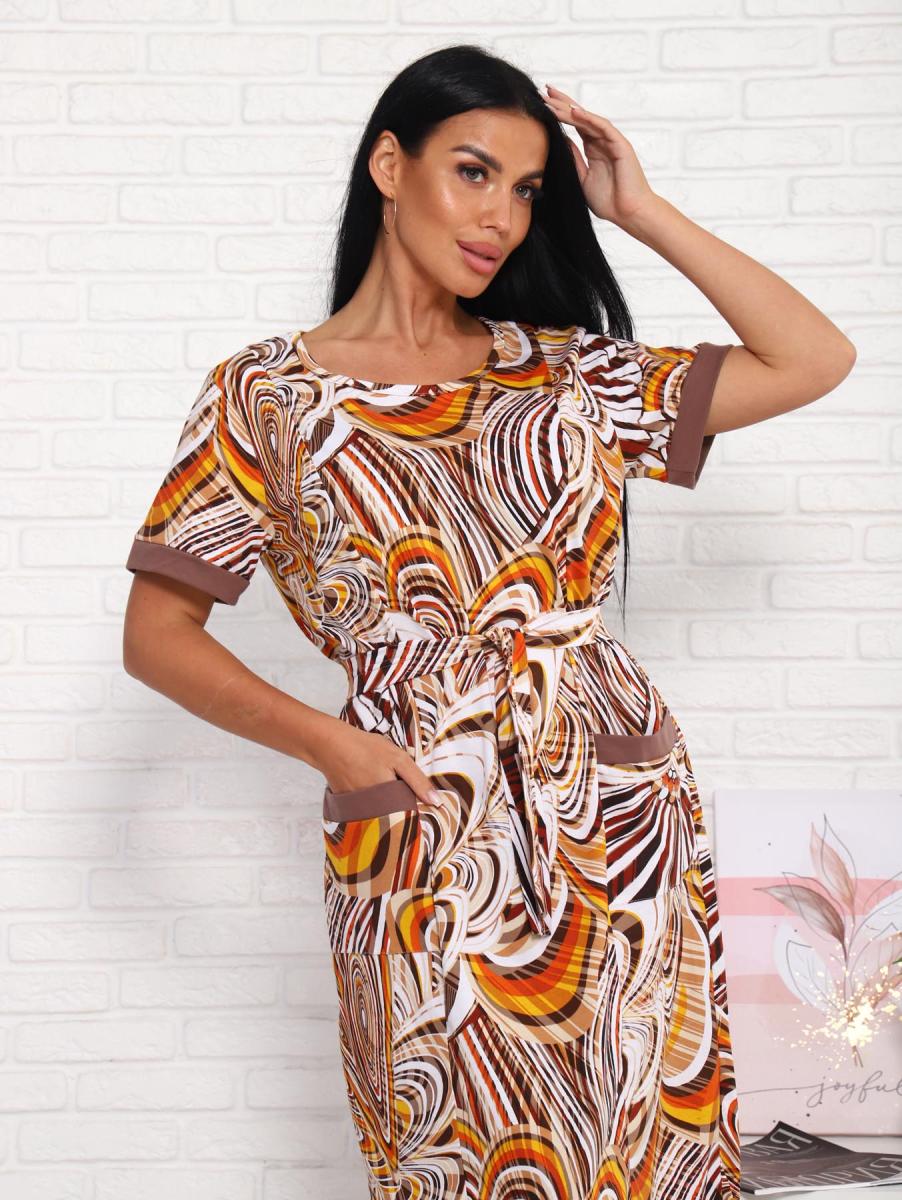Платье с карманами (01008, коричневый)