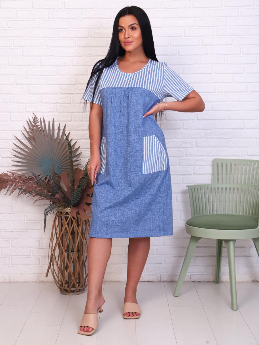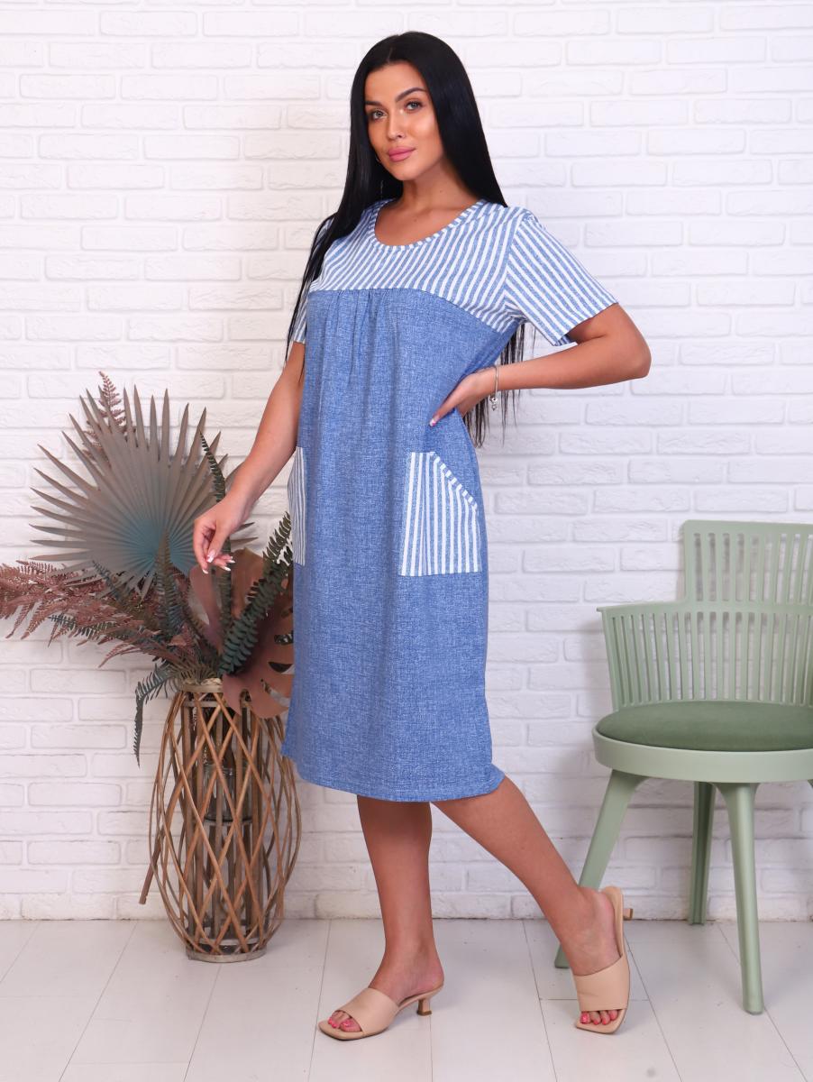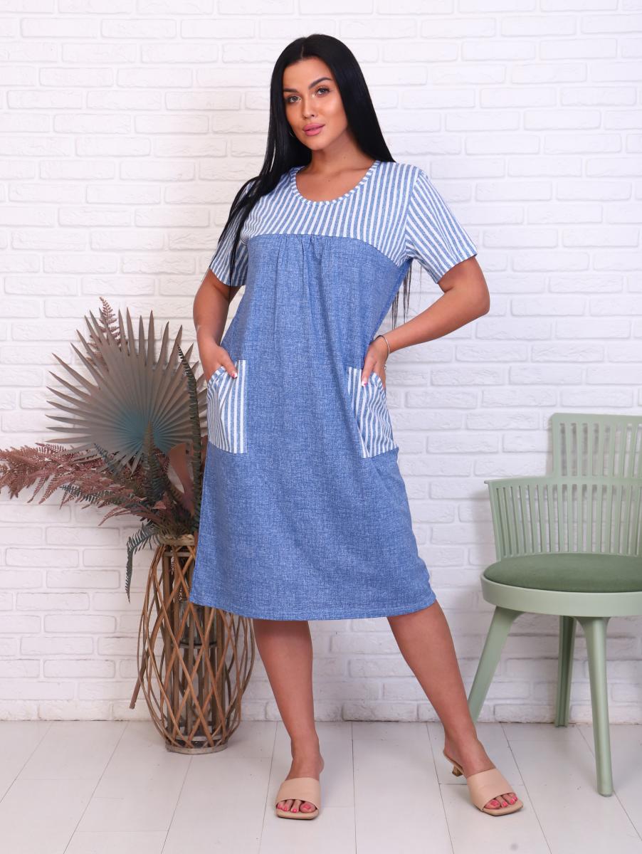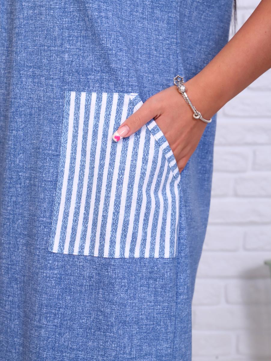 Это стильное платье голубого цвета станет отличным дополнением вашего гардероба. Изготовлено из высококачественной кулирки реактив, оно обеспечивает комфорт и свободу движений. Кокетка по переду и сборка под грудью добавляют изящества и подчеркивают фигуру, а два накладных кармана придают практичность и функциональность.