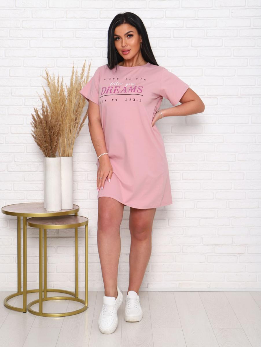 Платье кулирка с лайкрой, принт, сухая роза (924-1)