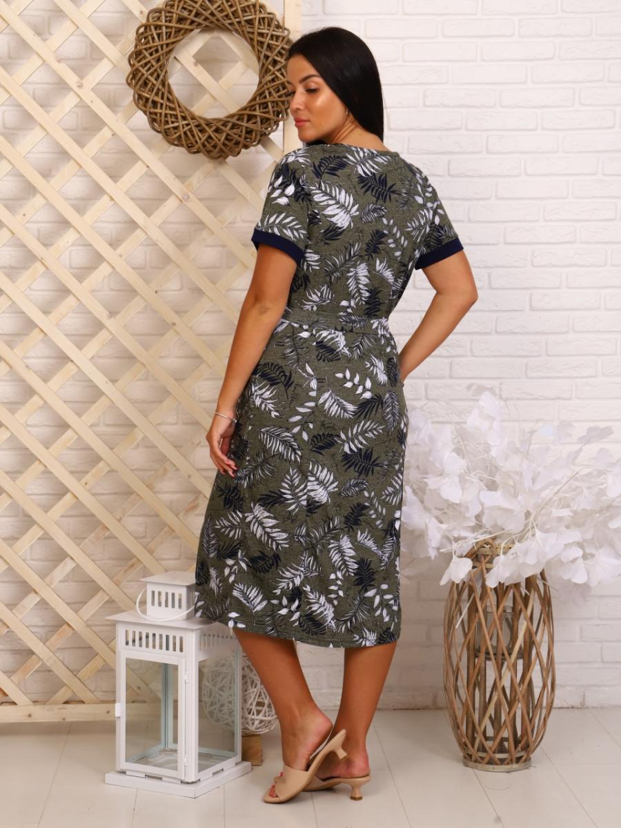 Это платье из кулирки набивной (реактив-рулон) станет отличным выбором для летних дней. Его свежий зеленый цвет и стильный дизайн делают его идеальным для повседневной носки, отдыха дома или праздников.