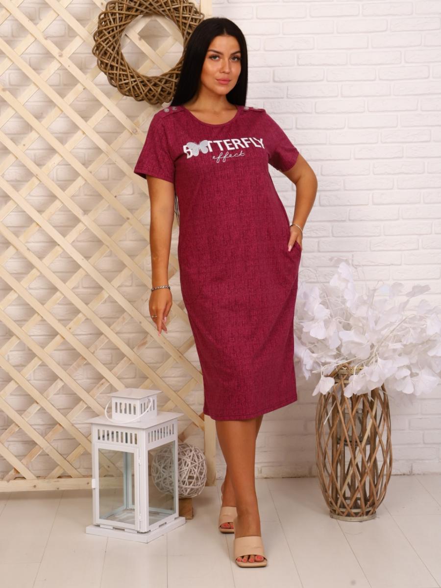 Платье с карманами, принт "Batterfly", бордо (713-2)